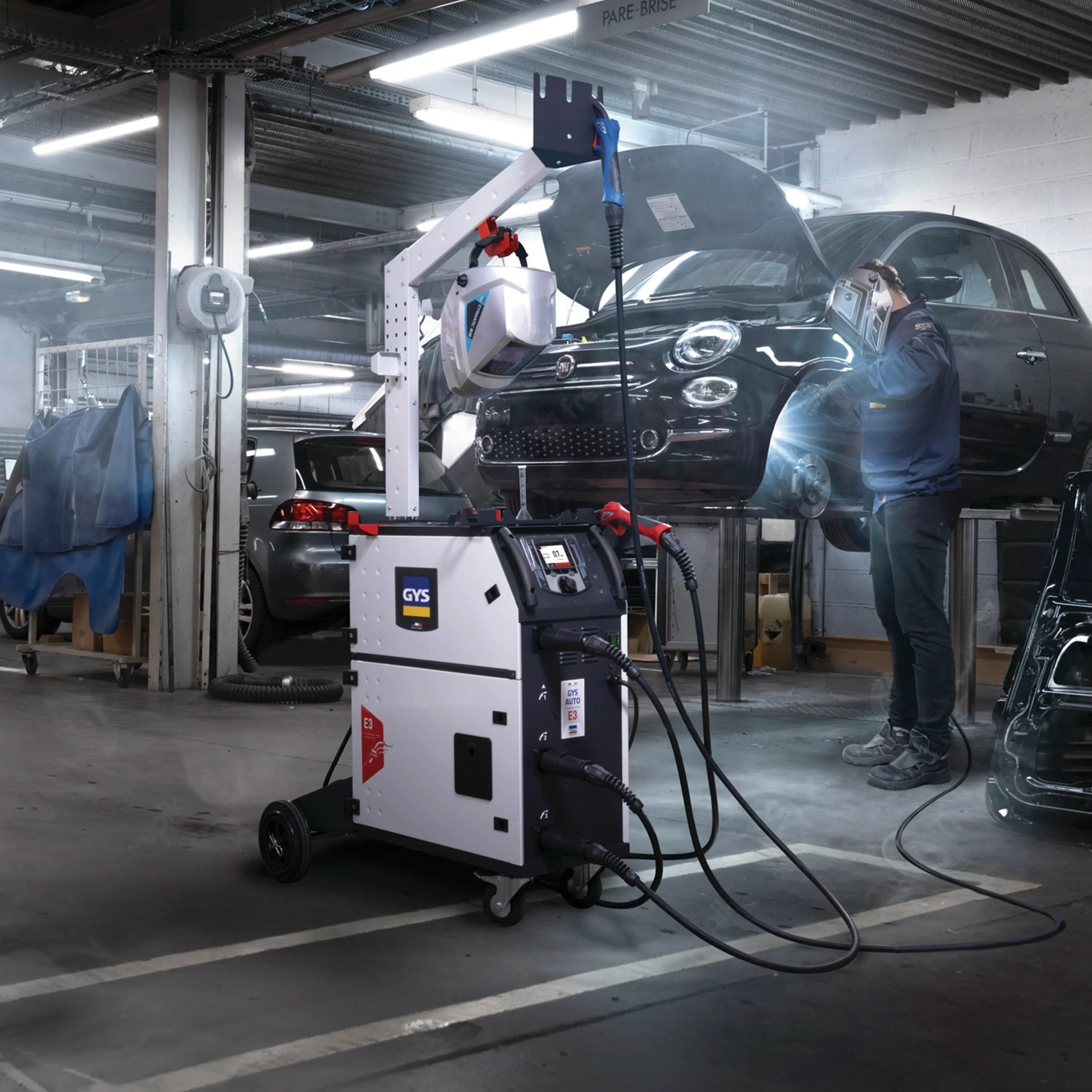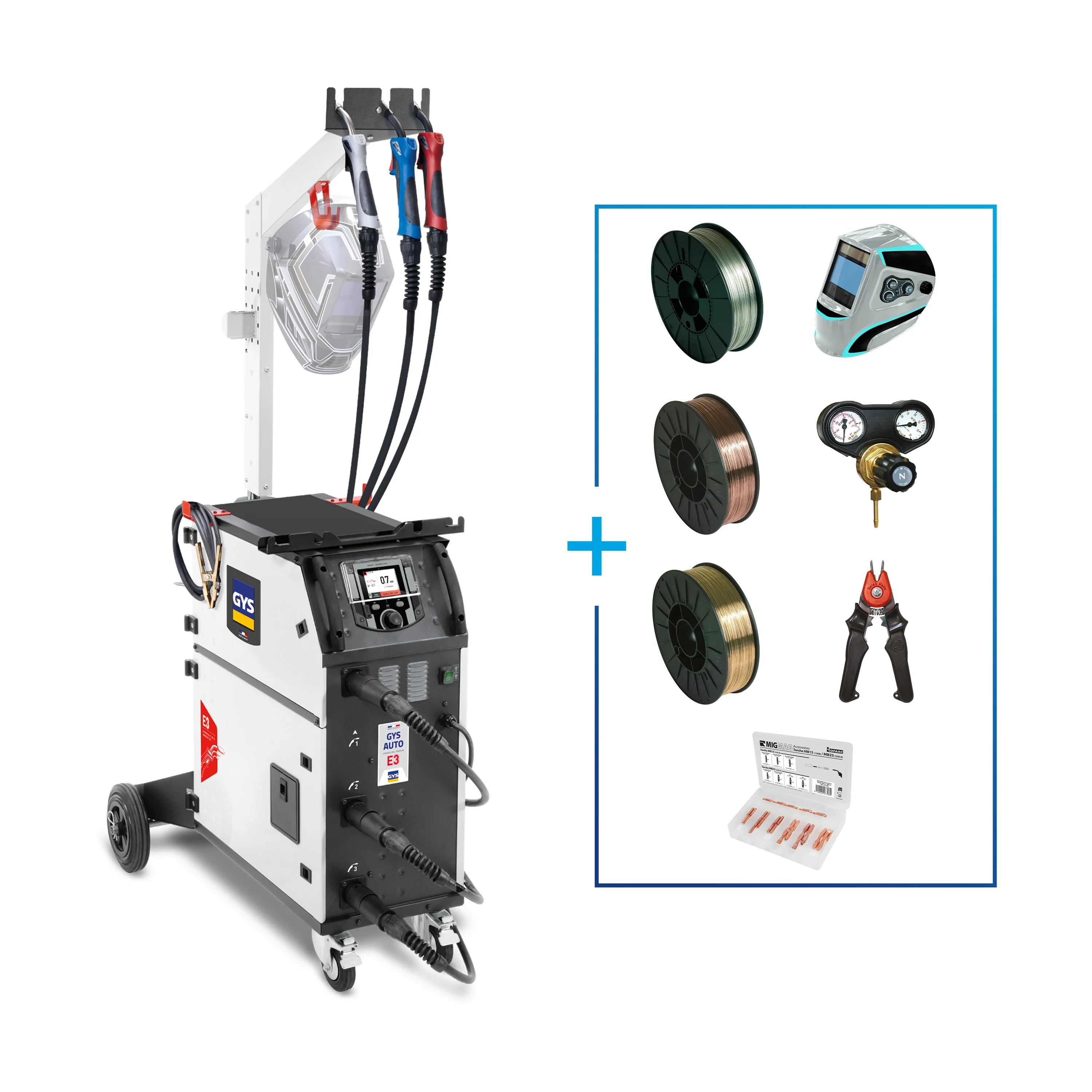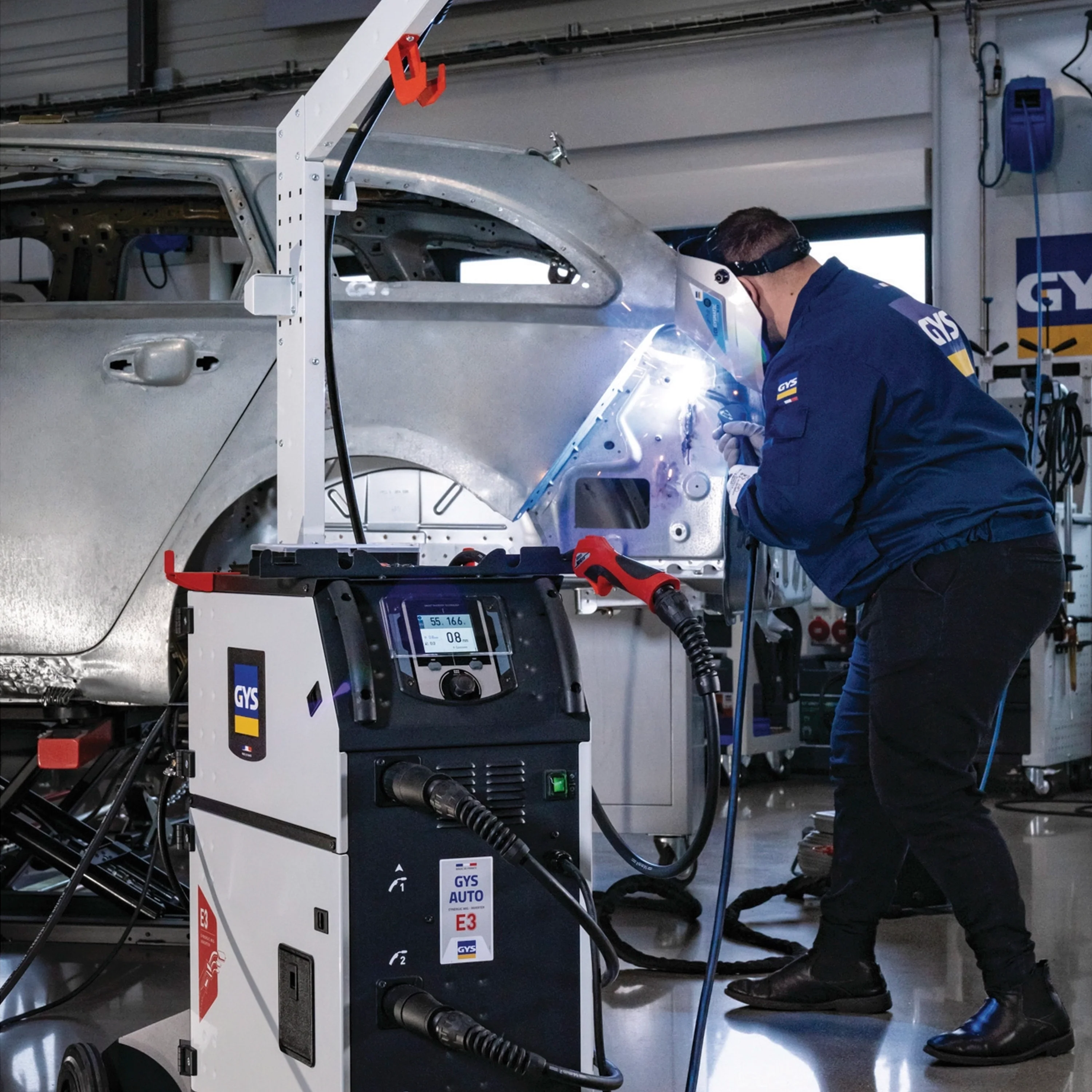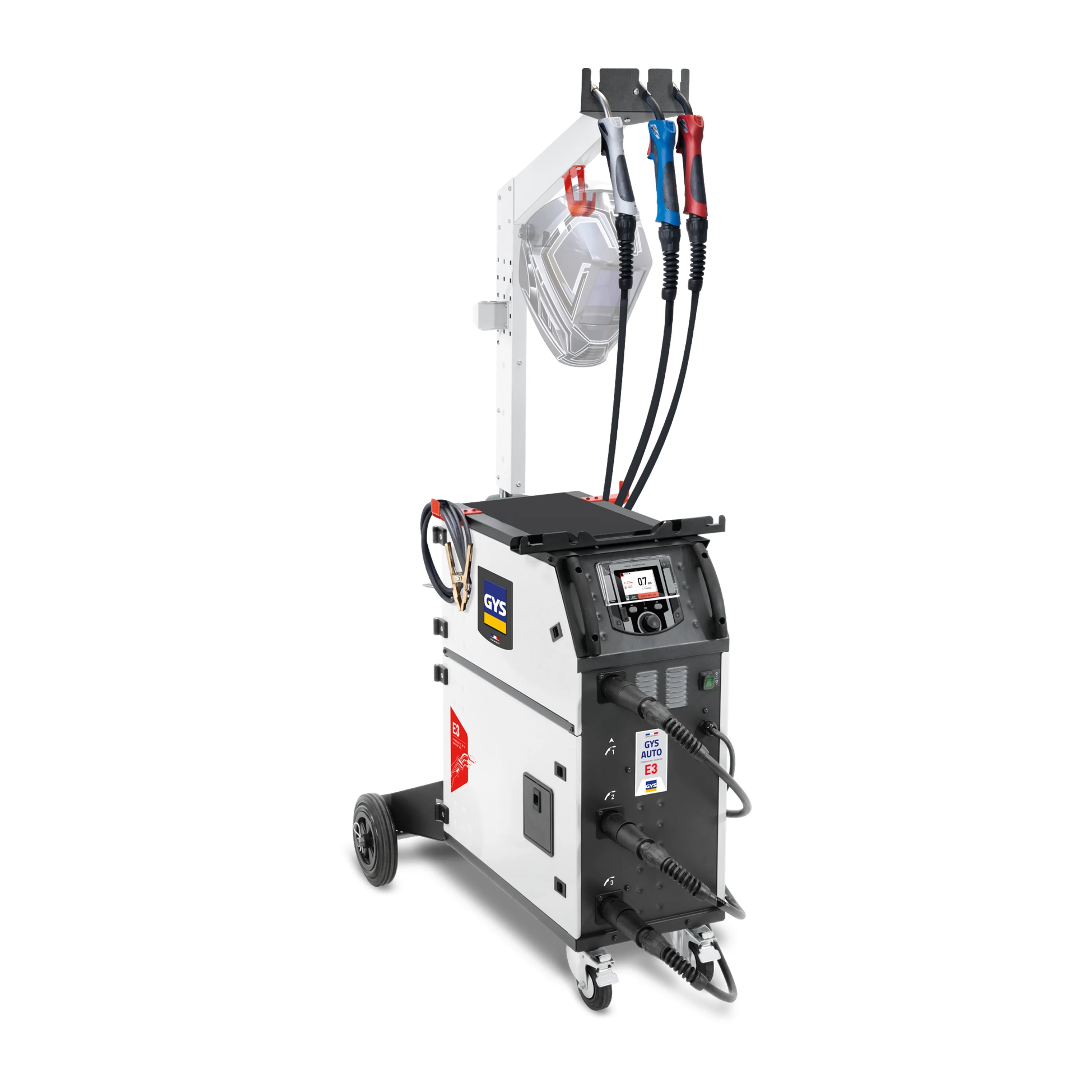 - E3 GYS AUTO est un poste à souder MIG/MAG monophasé synergique de 200 A.