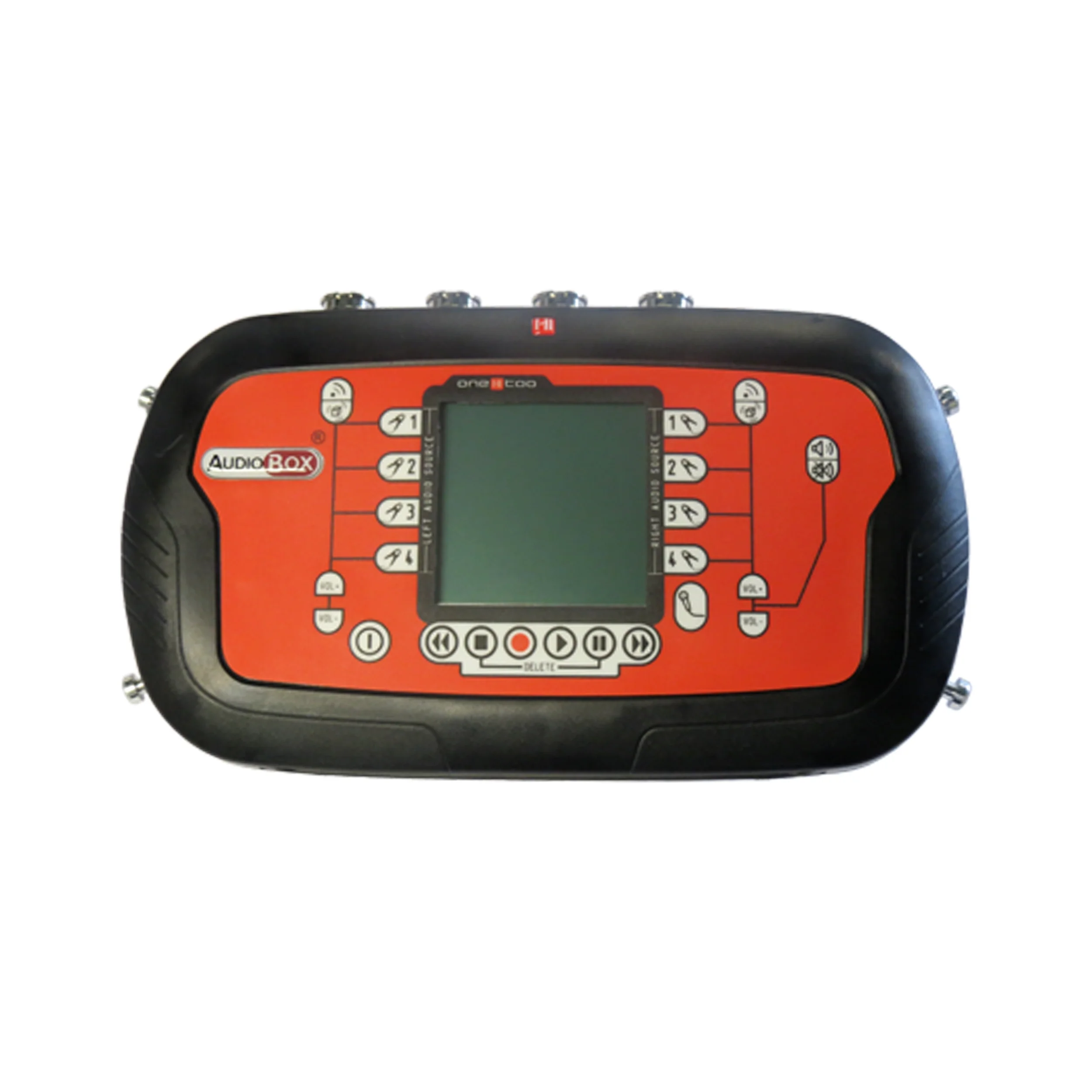 - L’Audiobox est un sonomètre qui écoute, localise et enregistre les bruits aériens et solidiens dans l’habitacle, dans le compartiment moteur, sur les transmissions et sur les liaisons au sol.