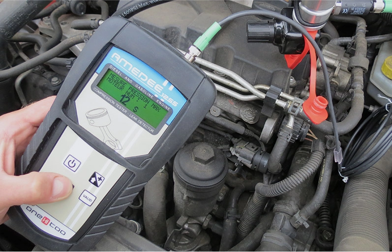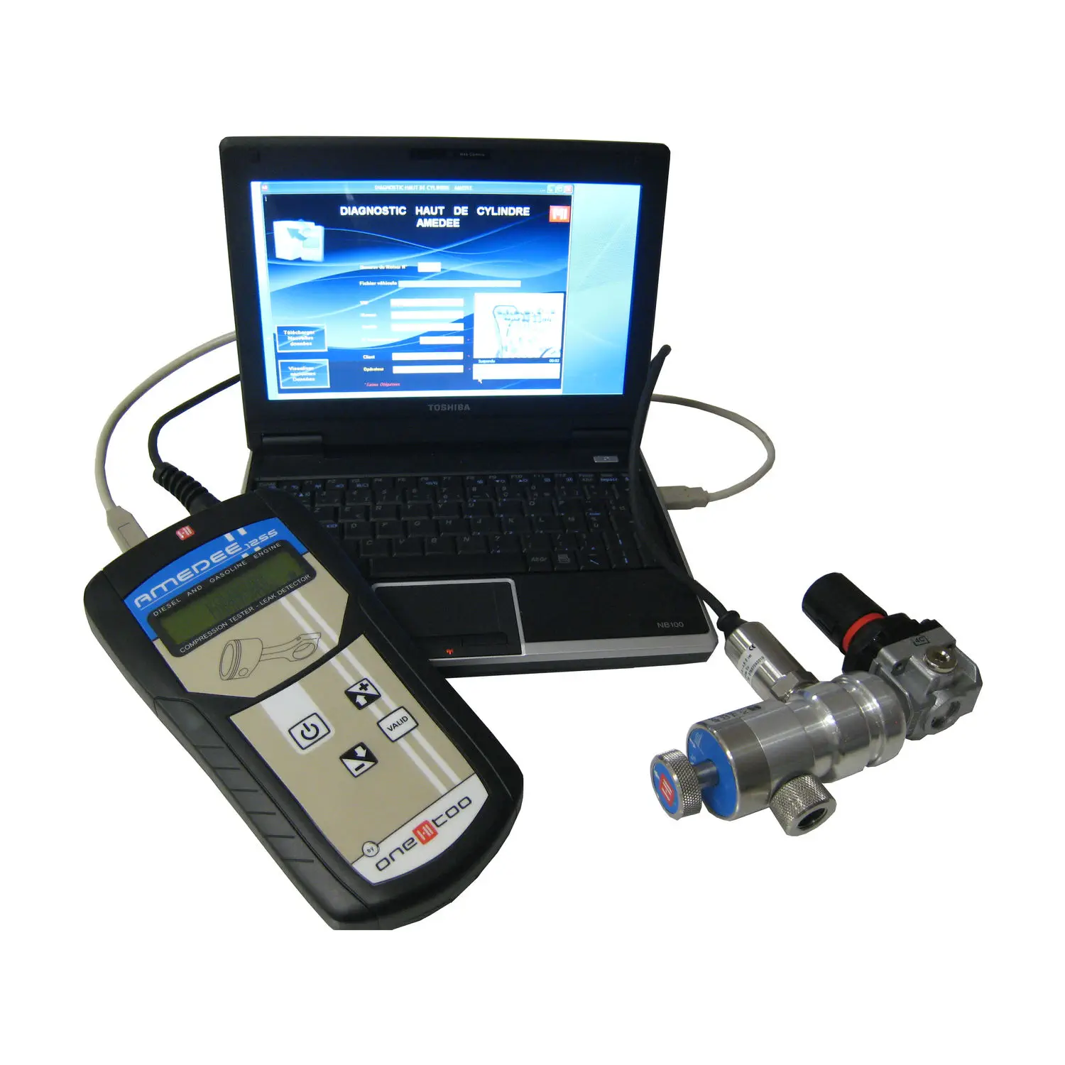 - Mesure la compression sur moteurs Essence et Diesel et Contrôle l’étanchéité par injection d'air comprimé régulé dans la chambre à compression.