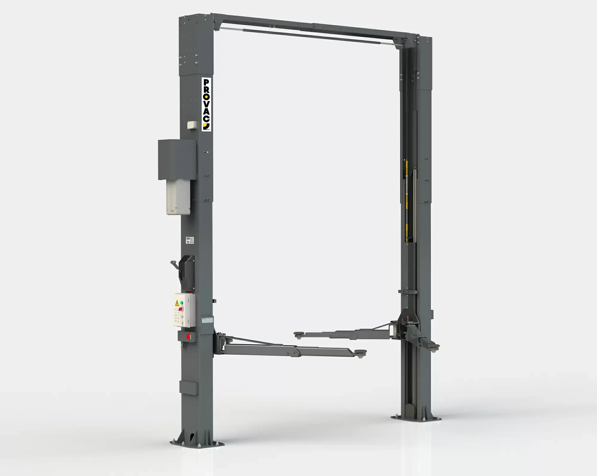 - Dans chaque colonne : 1 vérin hydraulique avec clapet parachute + un câble de synchronisation avec capteur de contrôle + 16 positions de sécurité mécanique