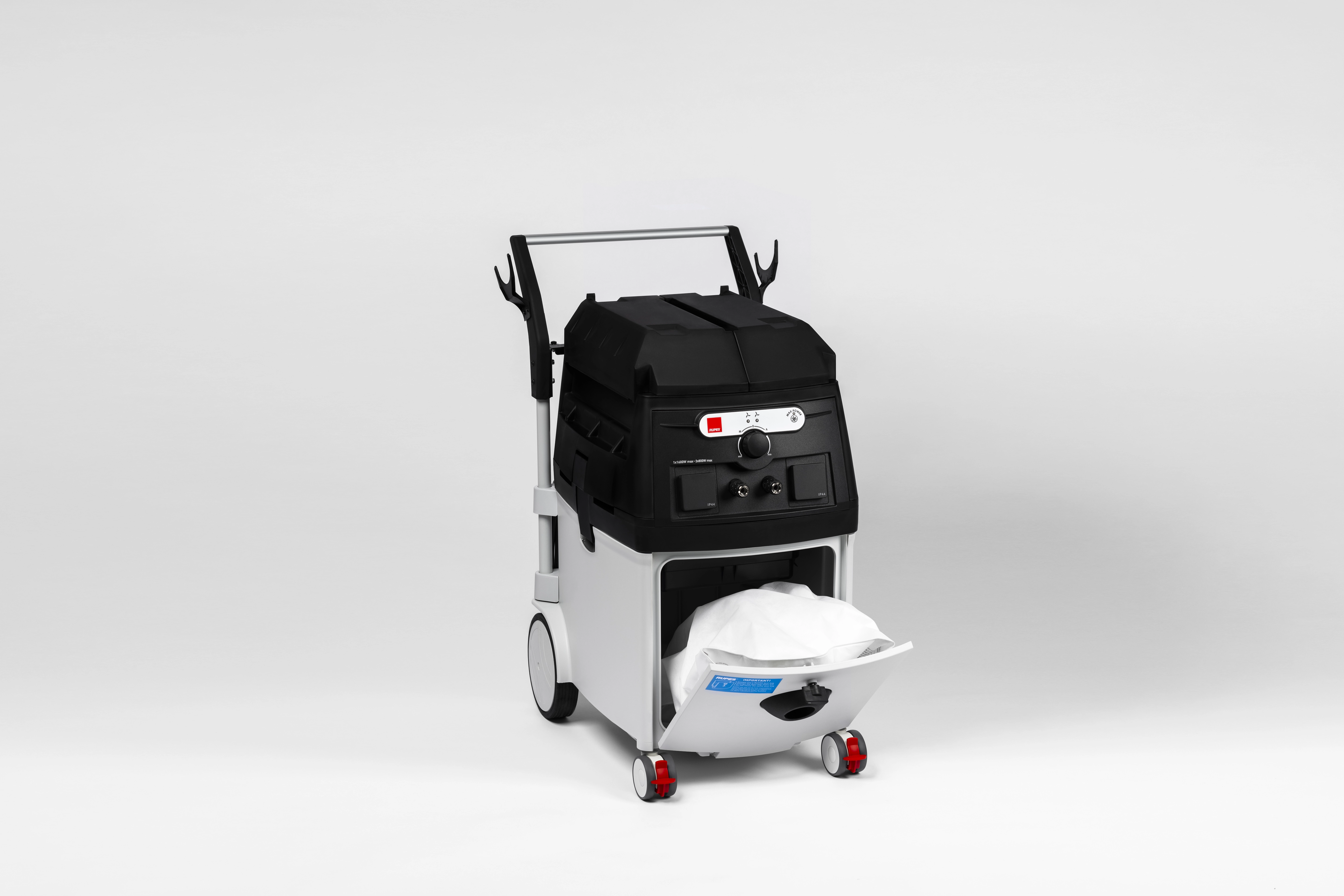 Cet aspirateur compact, maniable et puissant peut prendre en charge deux opérateurs simultanément grâce à la technologie dual motor innovante qui comprend deux moteurs 1200w.