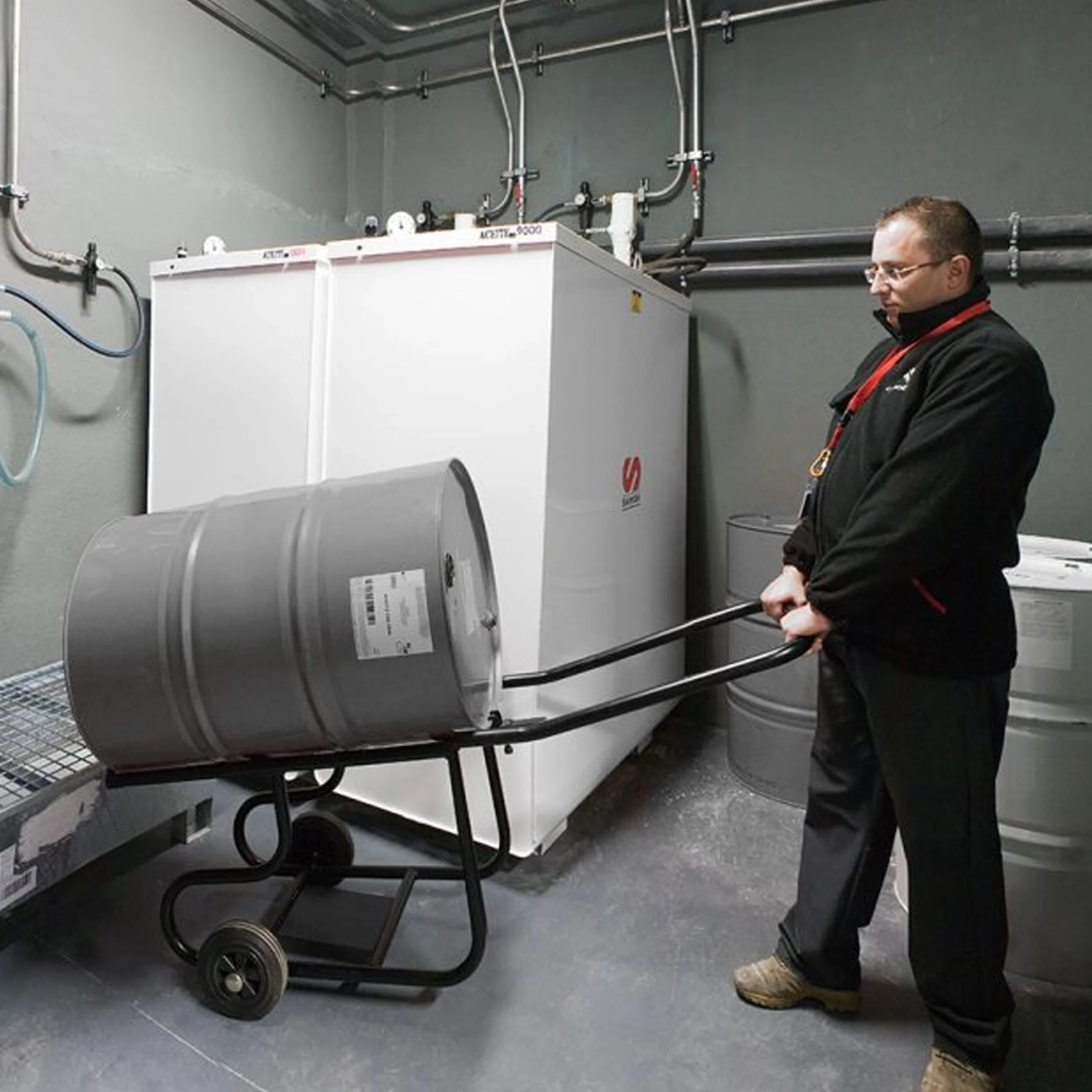 Recommandé pour le chargement de futs sur bacs de rétention ou dans les meubles cache-fûts.