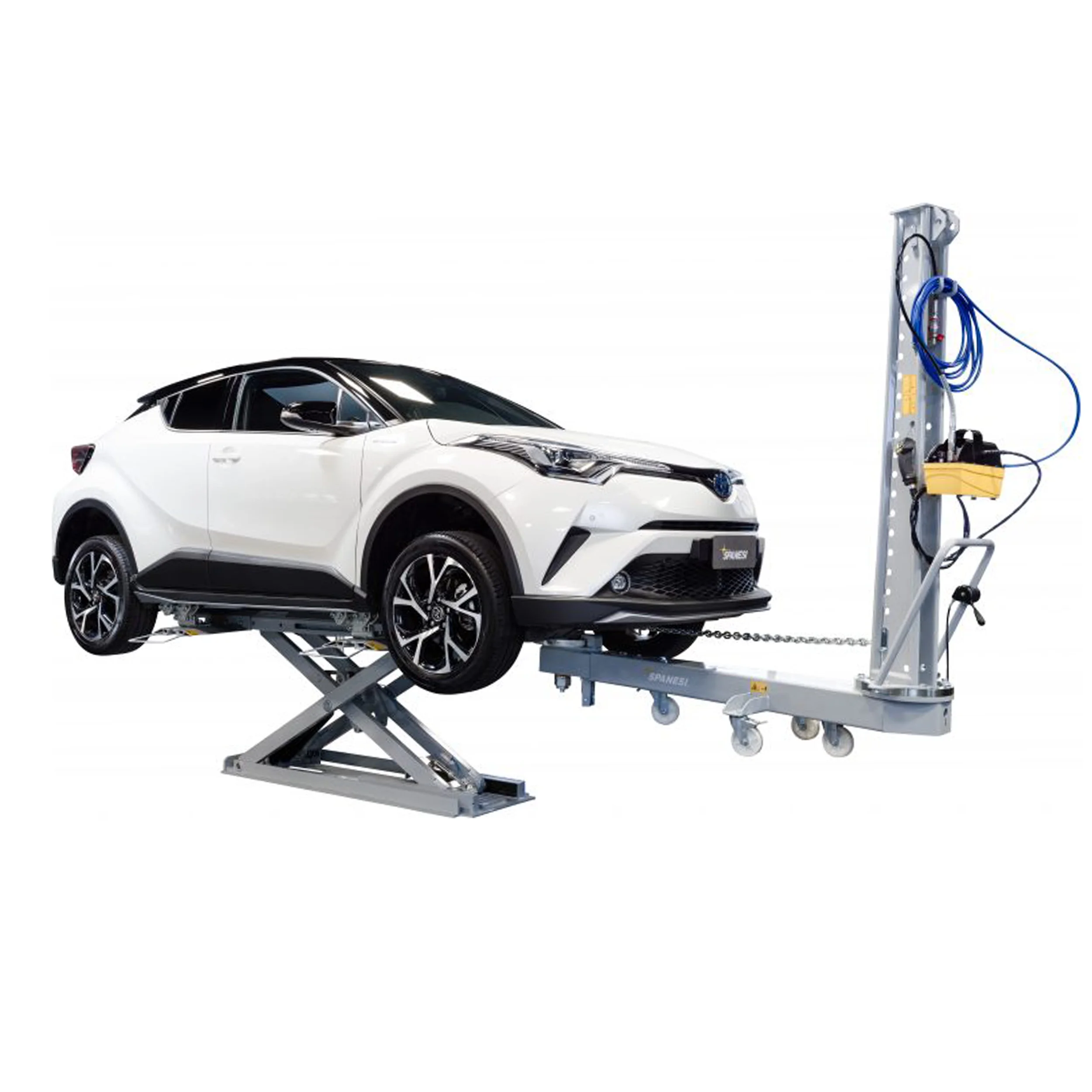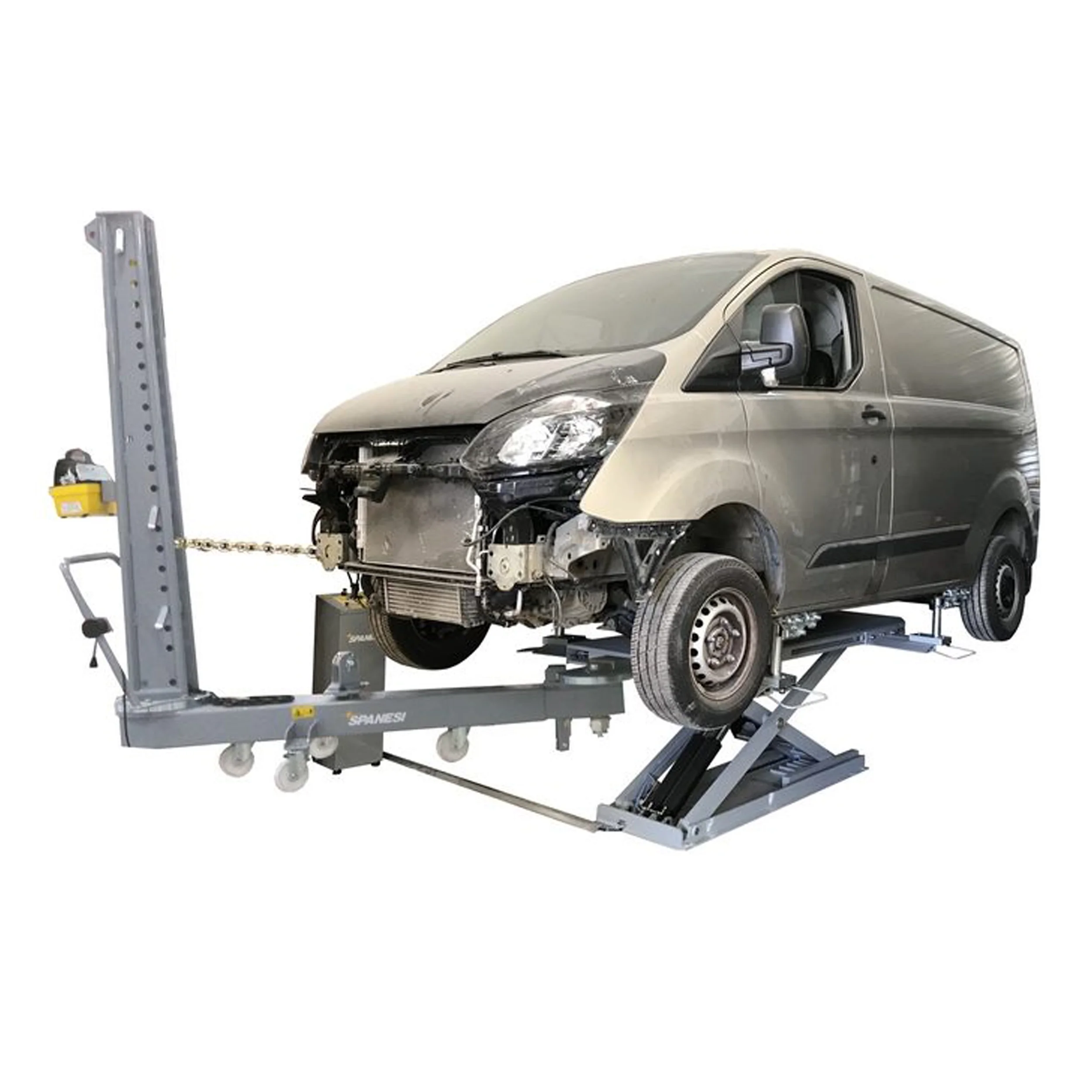 Il peut également être utilisé comme table de levage ou banc de redressage, avec une équerre de traction de 6 tonnes capable de fournir des tractions à 360 ° autour de l’ensemble du véhicule.