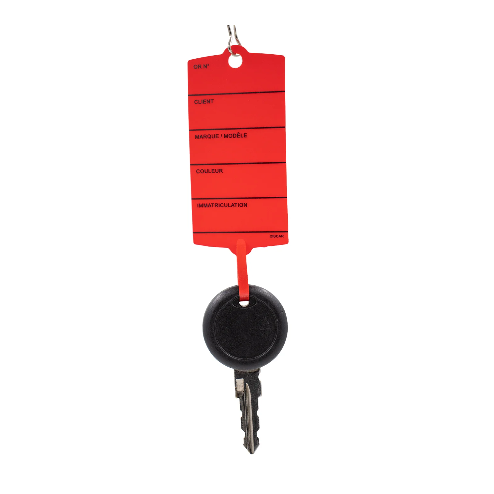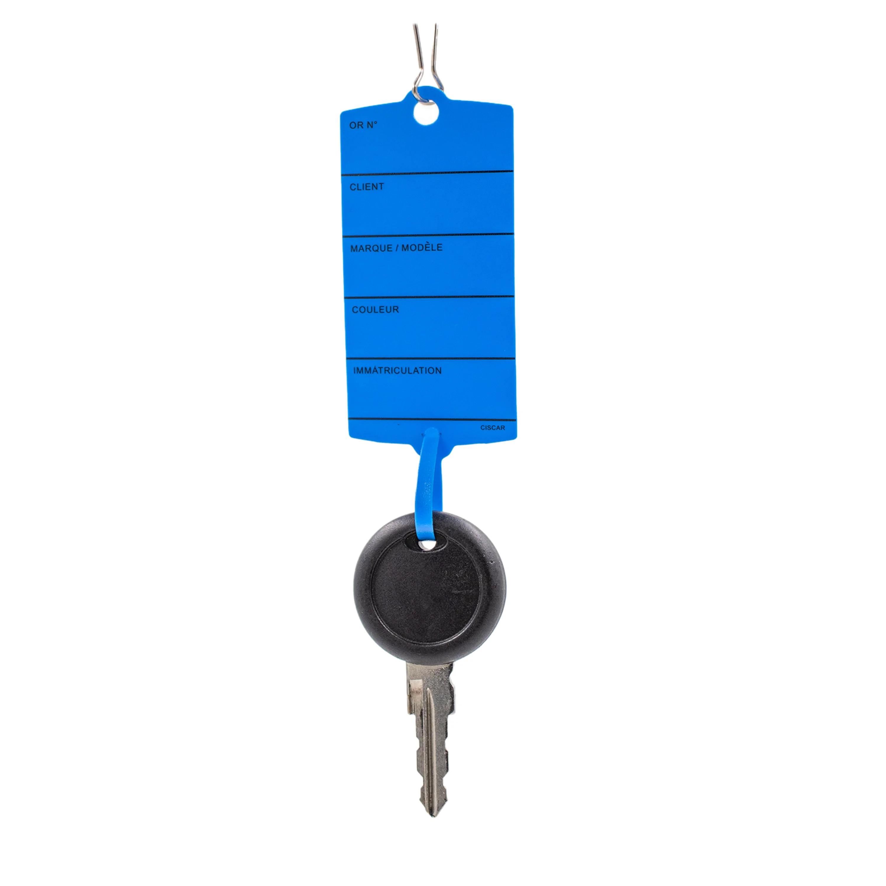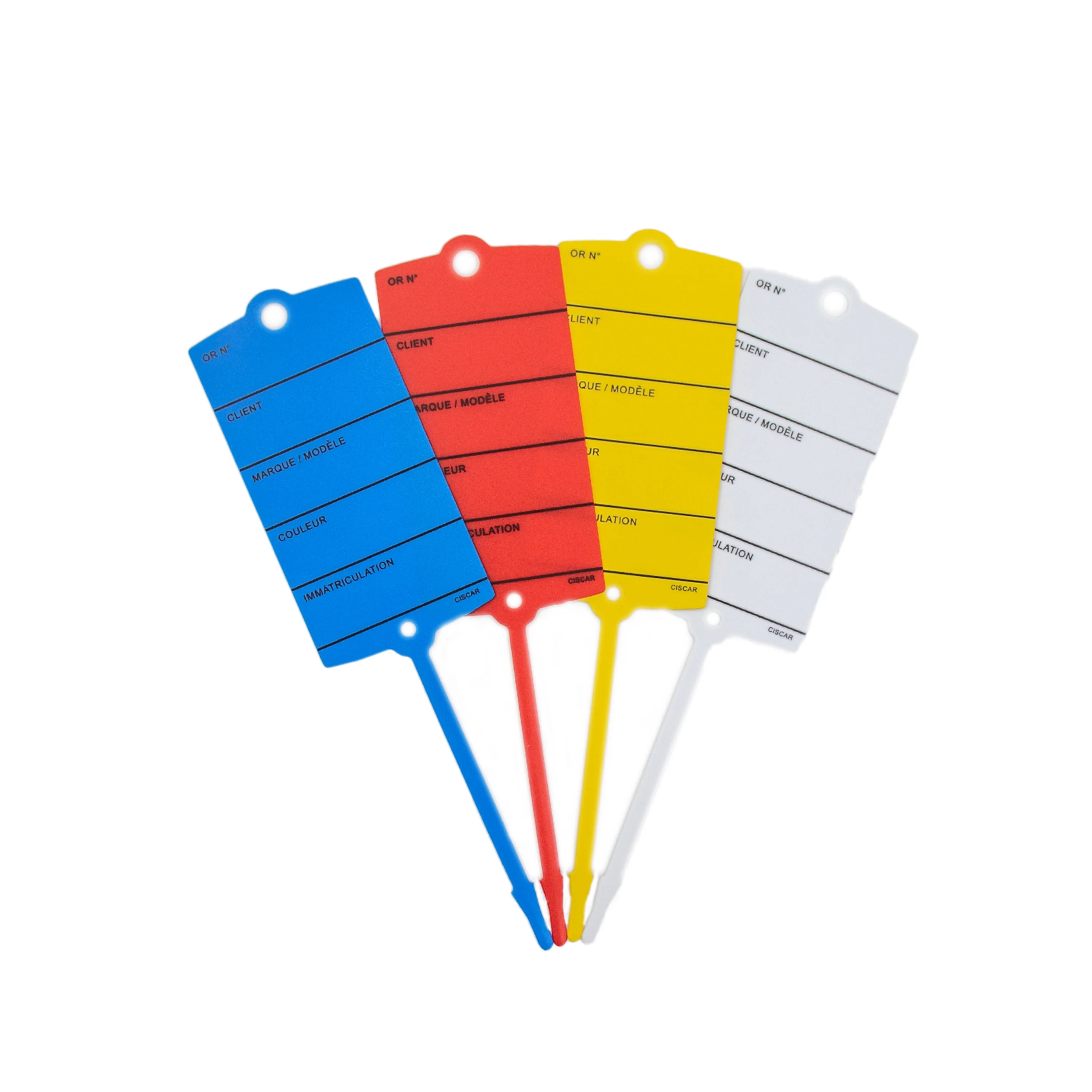 Cette étiquette en plastique permet d'identifier et d'accrocher les clés grâce à sa languette.