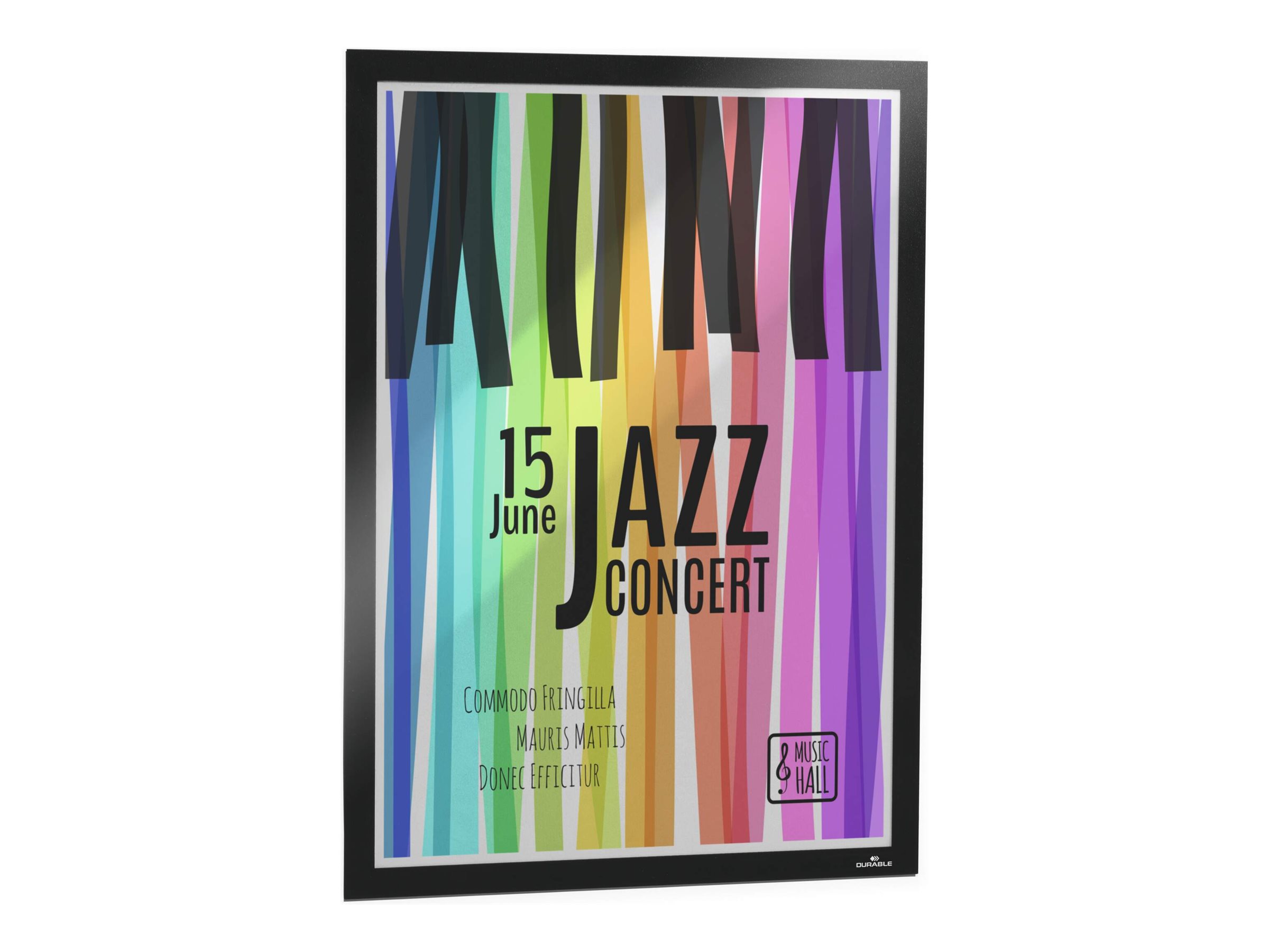 - Le cadre d'affichage DURAFRAME POSTER convient pour les affichages, p. ex. sur les murs, les vitres et les vitrines