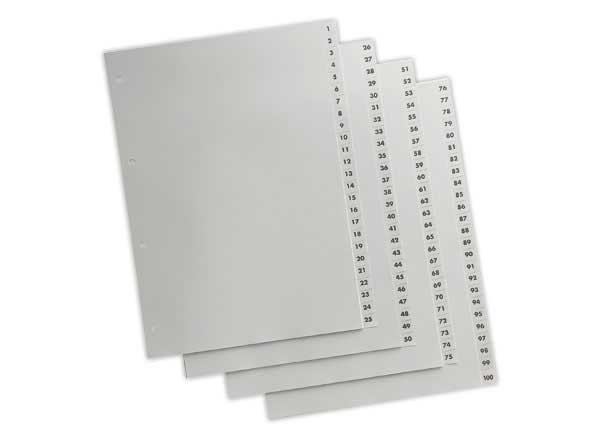 1 Jeu d'intercalaires numériques FIDUCIAL polyprop. A4 maxi 100 touches