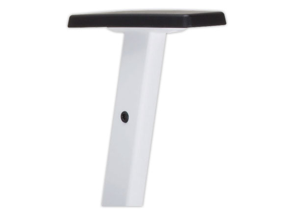 Accotoirs 2D réglables en hauteur 85 mm et en largeur 25 mm. En nylon blanc et manchettes PU noires.