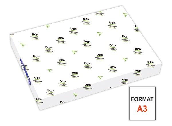 Papier pour impression laser couleur 100% recyclé Blancheur élevée : 145 CIE Excellente fidélité de reproduction d'images Aptitude Jet d'encre, certifié Colorlok par HP Garanti sans bourrages. Disponible de 90 à 250g/m² 500 feuilles A3 par ramette. 100 g.