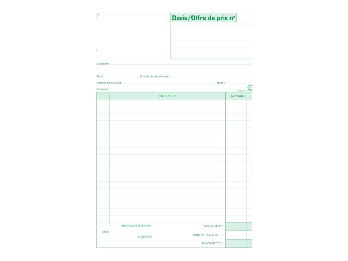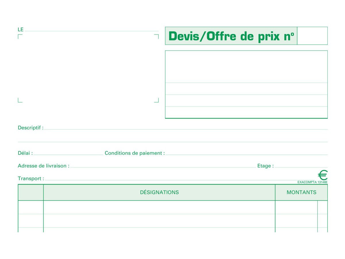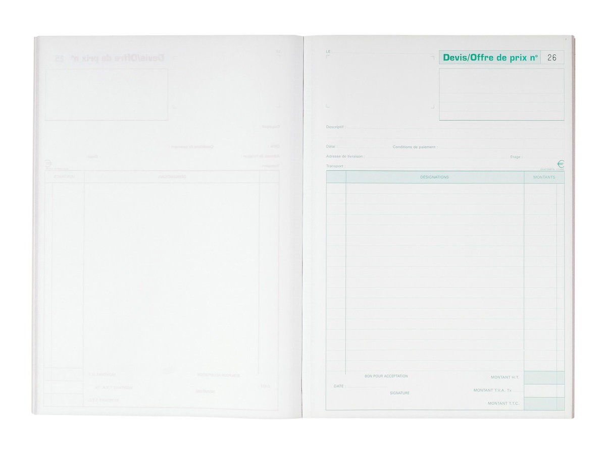 - Ce carnet A4 permet d'établir des offres en 2 exemplaires et de conserver une copie