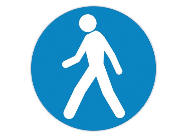 Autocollant passage piéton obligatoire pour le sol, intérieur et extérieur. Dim. :ø 50 cm