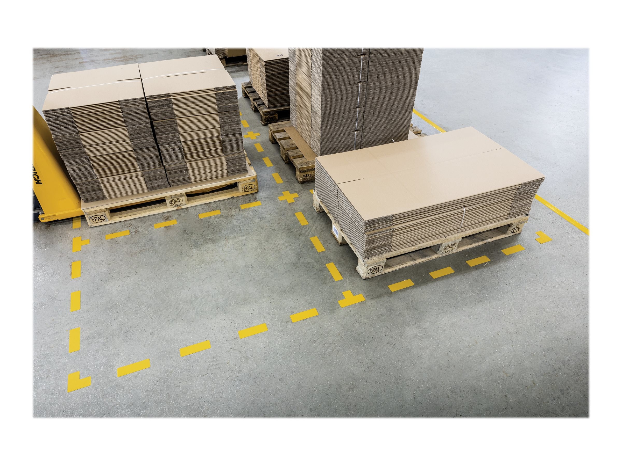 Description du produit | DURABLE signe - coin de position de la palette - 100 x 100 mm - jaune, RAL 1003 (pack de 10) |