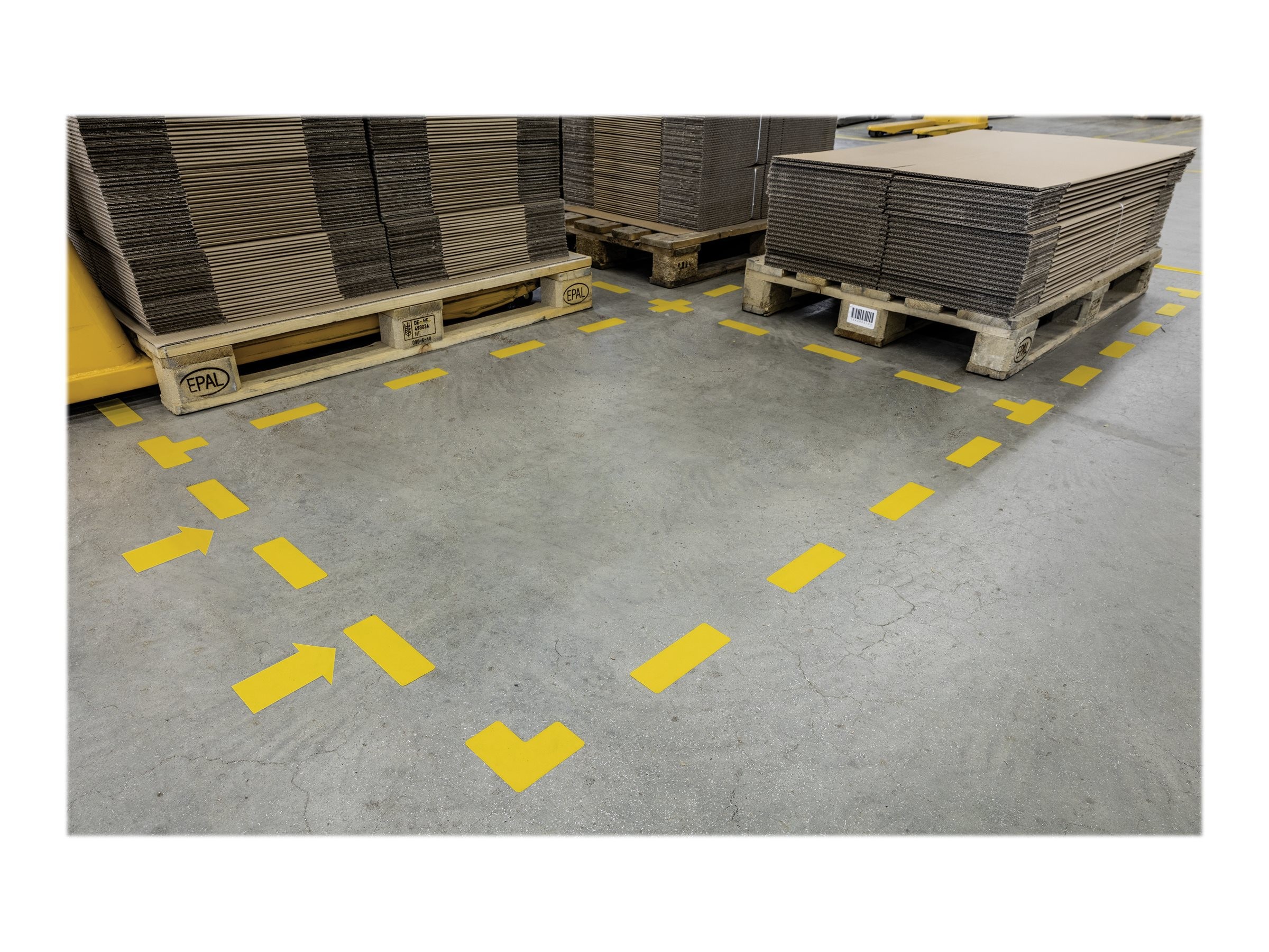 Symbole de marquage au sol adhésif permettant d'identifier les zones à risque, zones de circulation ou de passage en entrepôt. Conçu pour une utilisation en intérieur. Excellente adhésion sur surface propre et sèche. Résiste aux déchirures et à l'abrasion. Produit antidérapant conforme à la norme DIN 51130 (classe R9). Dimensions : L 10 x l 10 cm