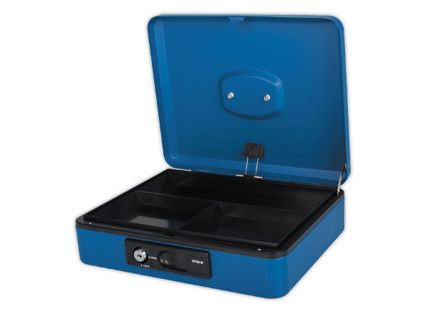 1 Caissette à monnaie 3 compartiments ouverture bouton poussoir bleu
