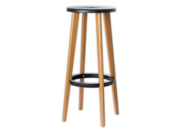 Tabourets avec un design intemporel d'inspiration scandinave, très faciles à transporter avec leurs assises percées. Pour des personnes pesant jusqu'à 120kg Assise : en ABS injectée. Piétement : en hêtre massif vernis. Dim. : H 76 x Ø 33 cm.