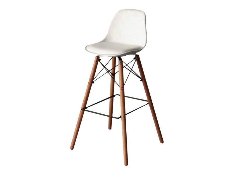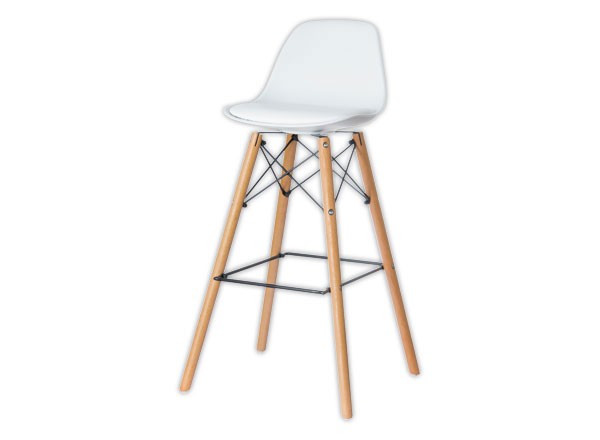 Assise : en polypropylène injecté avec coussin en polyuréthane. Pour des personnes pesant jusqu'à 110kg Piètement : en hêtre massif vernis et acier laqué noir. Hauteur d'assise : 74 cm. Dimensions : L 44,5 x P 45 x H 96,5 cm.