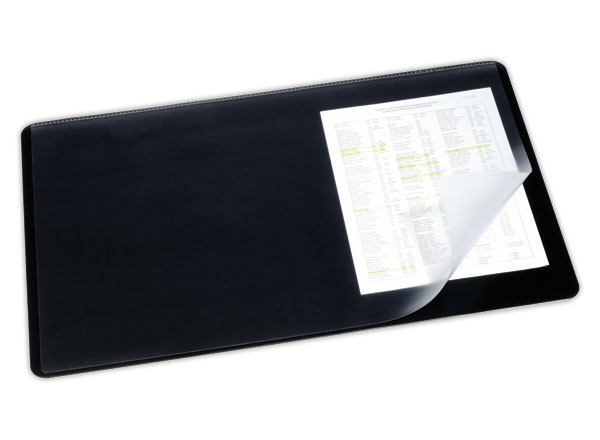 Muni d'un rabat en plastique transparent pour garder à disposition vos documents, photos ou notes importants. Rabat souple et antireflets soudé sur le bord supérieur du sous-main. Possède un excellent confort d'écriture. Dos antidérapant. En PP. Dim. : H 53 x L 40 cm.