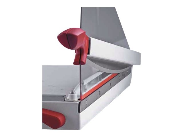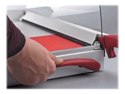 Coupe jusqu'à 25 feuilles. Pression automatique. Levier EASY-LIFT permettant de relever le système de pression et de retirer le papier sans avoir à remonter la lame. Lame de haute qualité en acier d'Allemagne avec poignée ergonomique . Dispositif de protection de lame transparent. Table métallique graduée en mm avec tracés des formats papier courants et des repères d'angle. Butée arrière coulissante. 4 pieds antidérapants. Dim. table : L 30,4 x P 38,5 cm. Dimensions : H 31 x L 34 x P 57 cm.