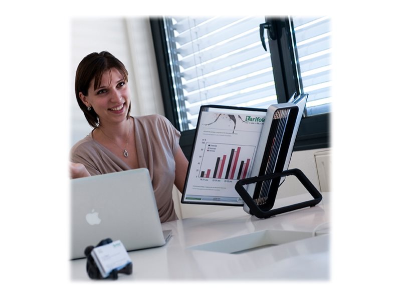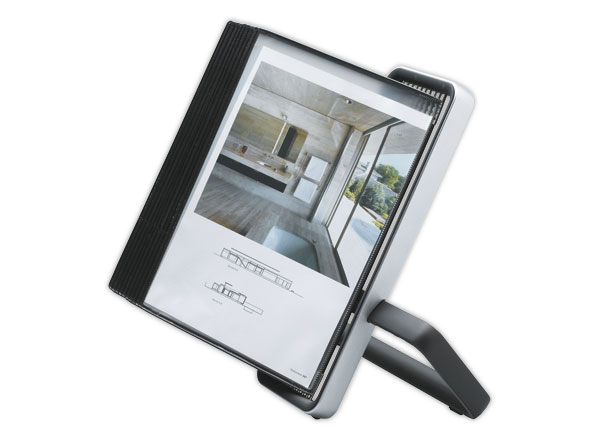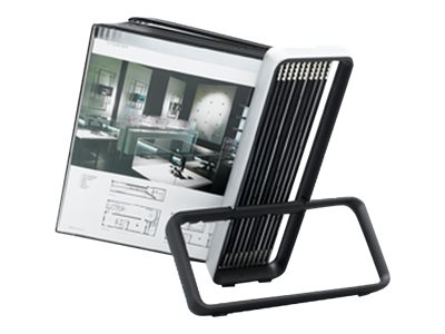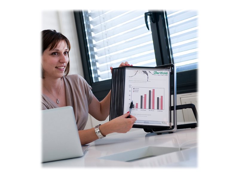 - Socle en aluminium ultra stable grâce au patins antidérapants. - 10 poches pivotantes noires A4 en polypropylène recyclable ou en PVC, avec pivots en acier. - 20 poches par l'ajout d'un VEO mural. - Dimension produit: 48 x 32 x 29 cm - Dimension socle: 29 cm