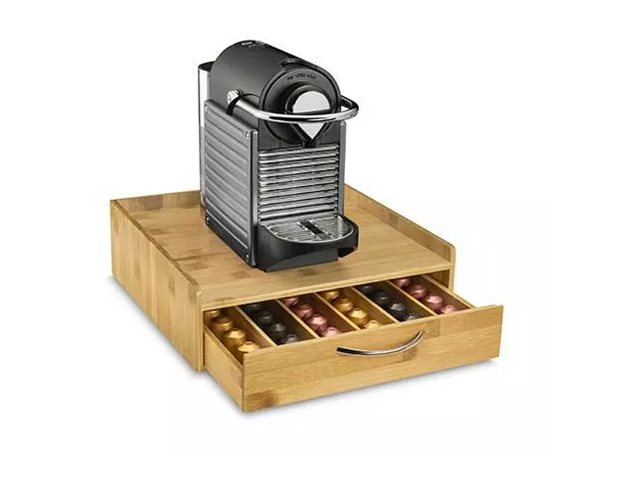 - Range dosettes fabriqué en bambou, support pour cafetière, idéal pour optimiser l'espace
