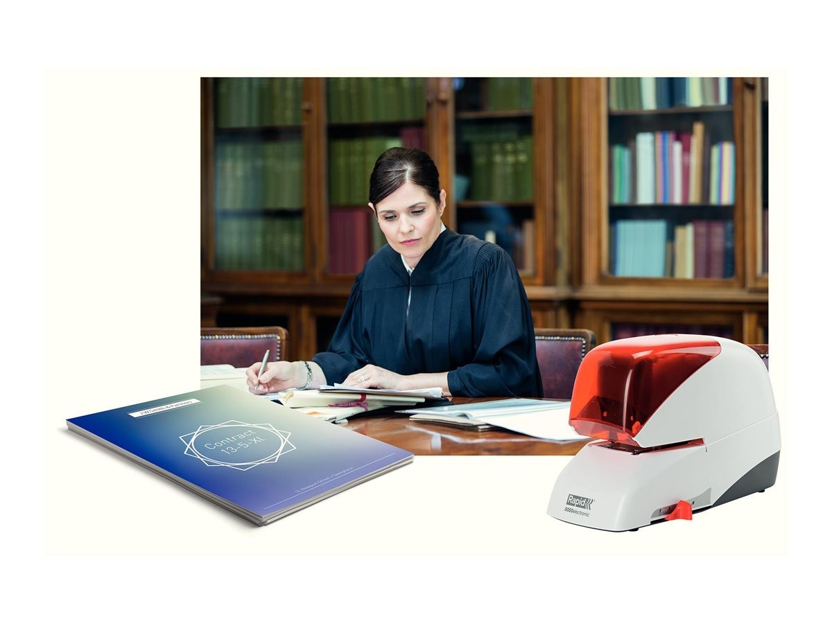 Pour usage intensif. Agrafeuse électronique silencieuse à forte capacité. Déclenchement automatique de l'agrafage avec l'introduction du papier. Profondeur d'agrafage : 6,5 cm. Longueur : 27 cm. Rechargement par cassette de 5000 agrafes. Agrafage à plat, de 2 à 50 feuilles. Adaptateur secteur fourni. Capacité d'agrafage : 50 feuilles. Livrée avec 1 cassette de 5 000 agrafes. Utilise des agrafes 5050. Agrafes et agrafeuse à usage intensif, un dépoussiérage périodique est conseillé pour éviter les blocages. Un guide de déblocage figure dans la fiche fabricant sur www.fos.com.