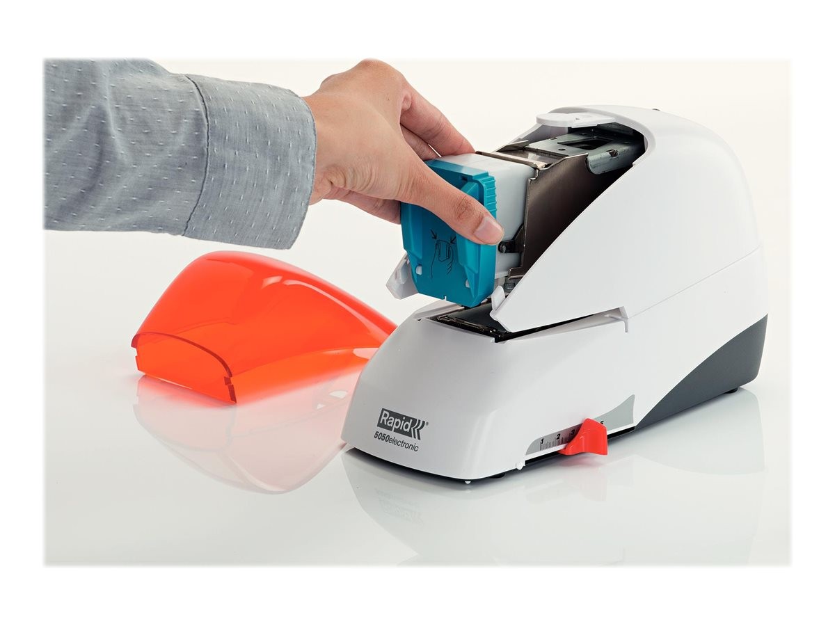 Description du produit | Rapid Supreme 5050e - agrafeuse électrique - 50 feuilles - plastique, métal - argent, orange |