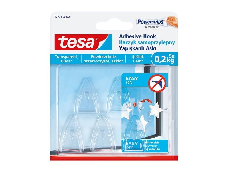Description du produit | Tesa Powerstrips - crochet autocollant - transparent (pack de 5) |