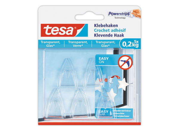 | Description du produit | Tesa Powerstrips - crochet autocollant - transparent (pack de 5) |