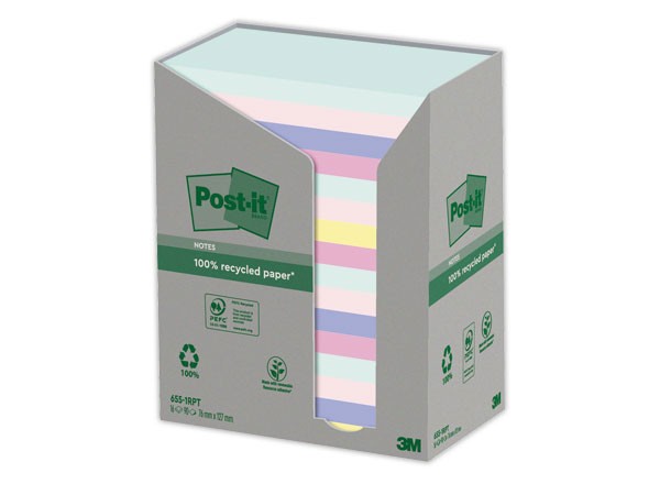 Description du produit | Post-it Recycled 655-1RPT - notes - 127 x 76 mm - 1600 feuilles (16 x 100) |