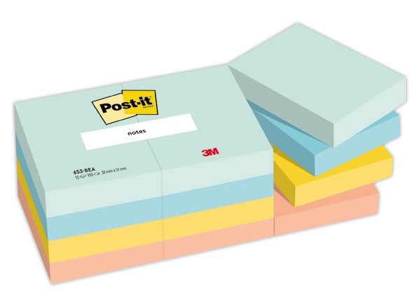 Description du produit | Post-it Super Sticky 653 Beachside - notes repositionnables - 38 x 51 mm - 1200 feuilles (12 x 100) |