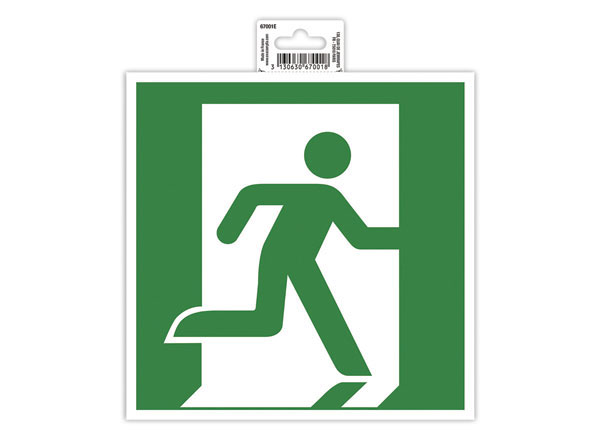 Les dispositifs de signalisation d'évacuation et de sorties de secours sont obligatoires dans tous les établissements amenés à recevoir du public afin de permettre de gérer le plus facilement possible tout plan d'évacuation d'urgence, par exemple en cas d'incendie. Afin d'être facilement repérable, cette signalisation doit être placée de façon visible à l'intérieur de l'établissement. Panneaux conformes aux normes ISO 7010. Épaisseur 15/100E.