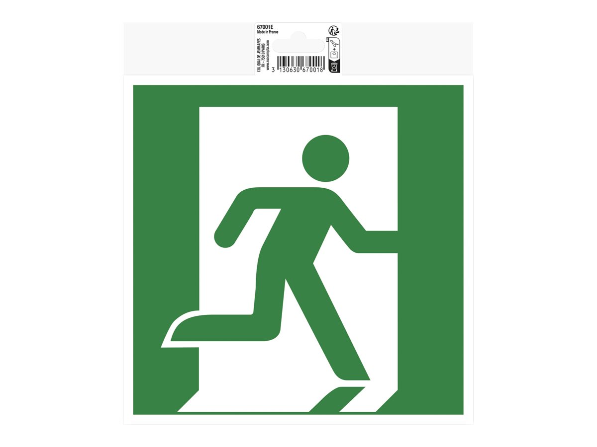 | Description du produit | Exacompta signe - évacuation (droite) - 200 x 200 mm - polychlorure de vinyle (PVC), support en vinyle - vert |