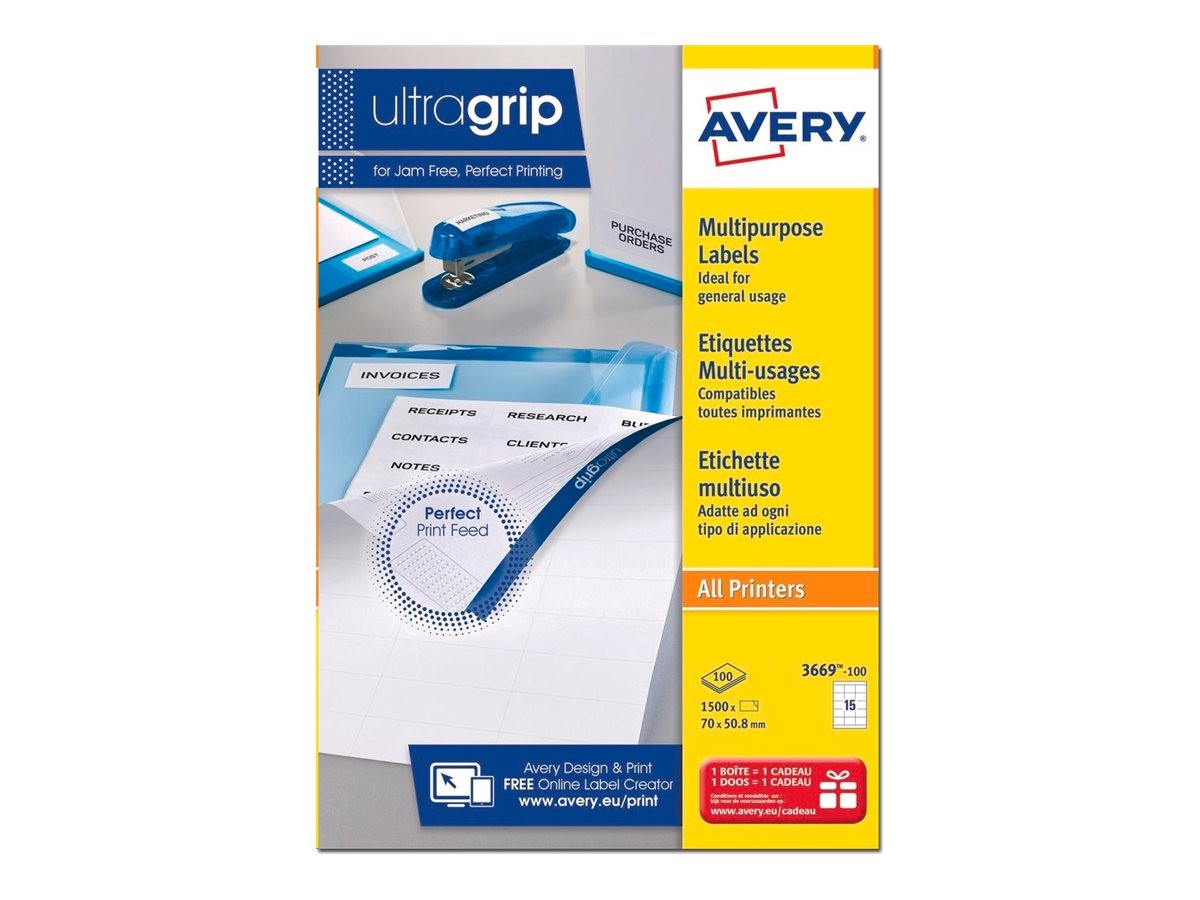 Description du produit | Avery Multi-Purpose Labels 3669 - étiquettes multi-emploi - 1500 étiquette(s) - 50.8 x 70 mm |