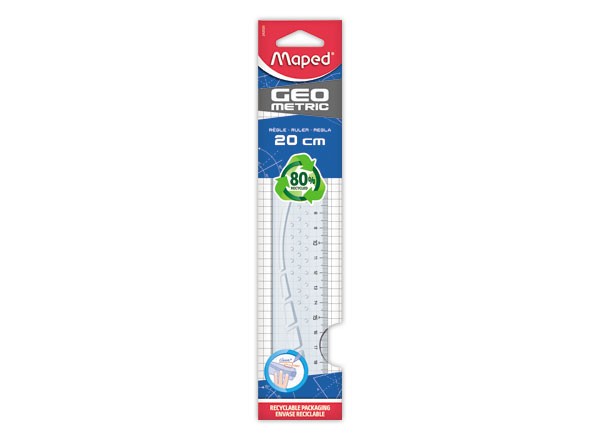 1 Règle plate 20 cm - GEOMETRIC, en plastique recyclé