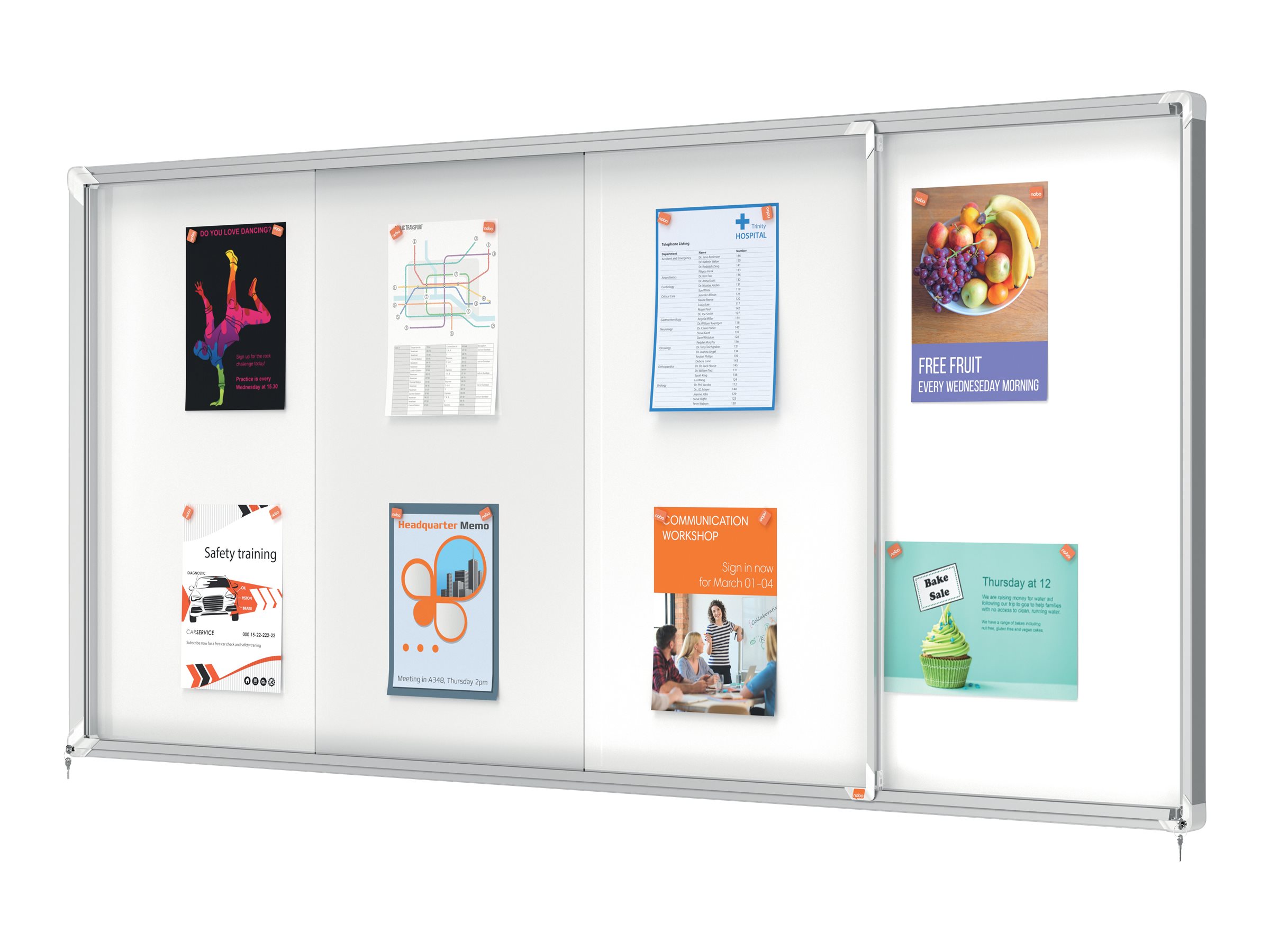 - Façade en verre sécurité. - 27 x A4. - Fond métal blanc magnétique et inscriptible. - Serrures renforcées. - Porte coulissante. - Livrée avec 2 clés. - Kit de fixation murale fourni. - Garantie : 3 ans. Livré en direct sous 10 jours ouvrés. Certifiée NF Education et NF Collectivité.