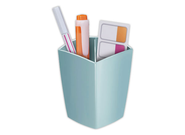 Design contemporain. Deux compartiments permettent de séparer les objets et de les maintenir droits. Capacité 32 crayons. Polystyrène anti-choc recyclable. Dim. : L 7,4 x P 7,4 x H 9,5 cm.