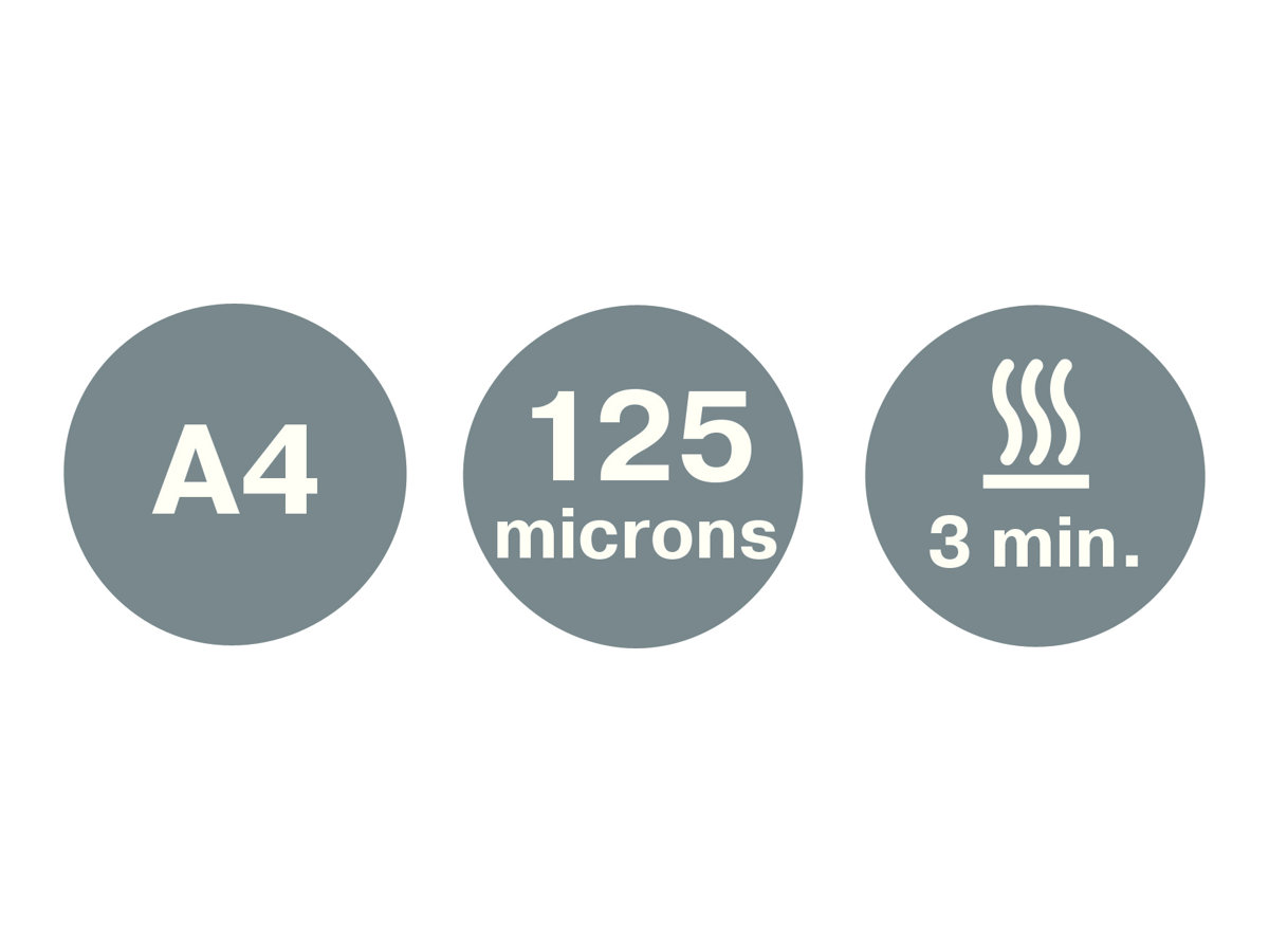 - 60 secondes pour plastifier une pochette A4 de 80 microns.