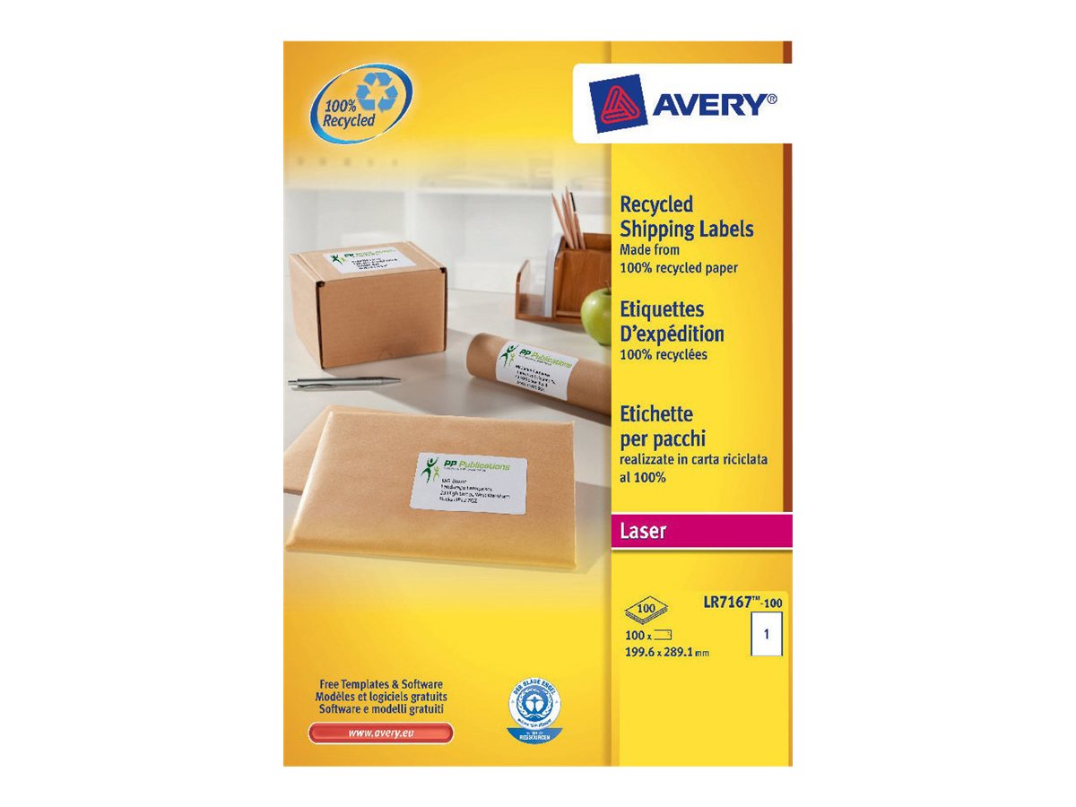 | Description du produit | Avery QuickPEEL Recycled Labels LR7167 - étiquettes adresses - 100 étiquette(s) - 199.6 x 289.1 mm |