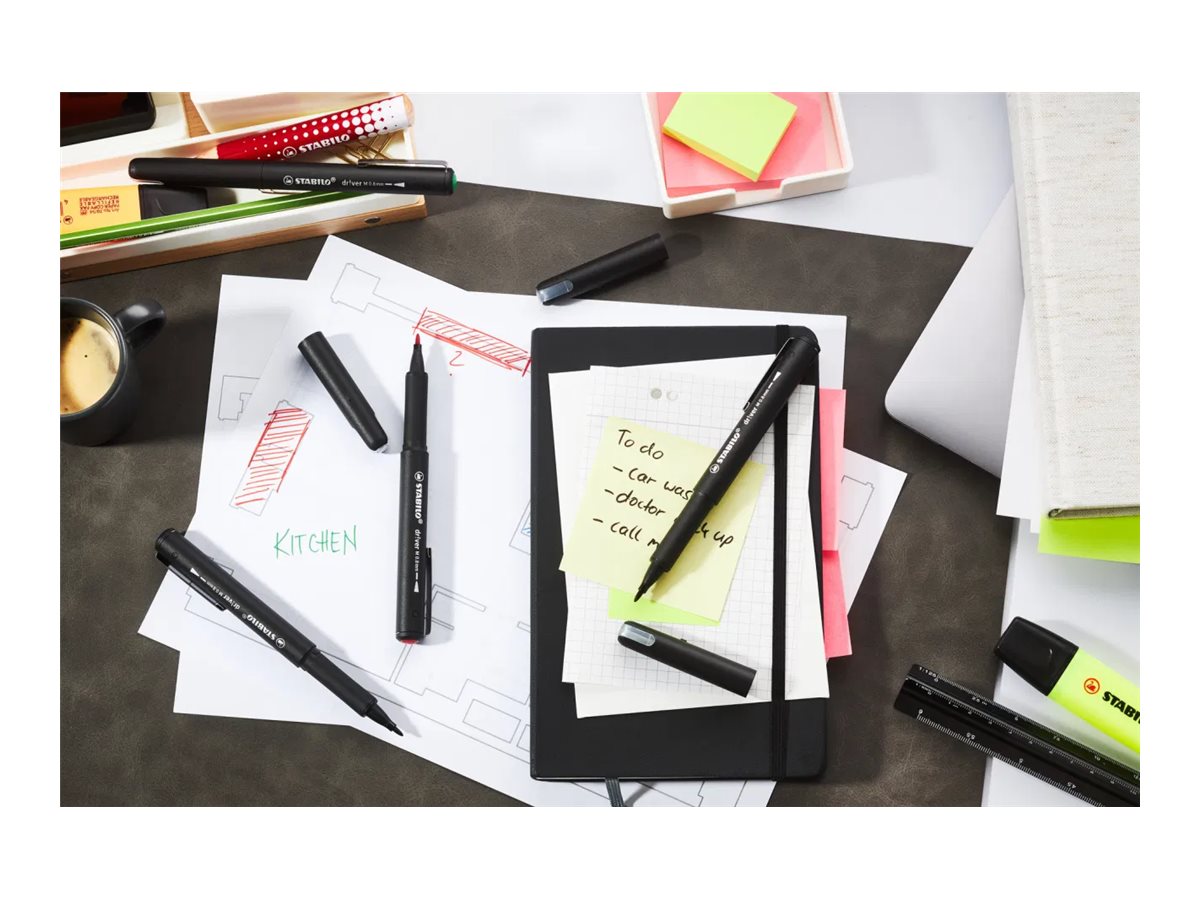 STABILO dr!ver. Couleurs d'écriture: Bleu, Type de point: Moyen, Couleur du produit: Noir. Poids du paquet: 81 g, Hauteur du colis: 16 mm, Profondeur du colis: 157 mm. Quantité: 1 pièce(s)Voir la fiche produit
