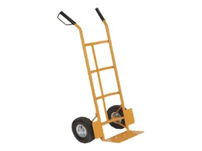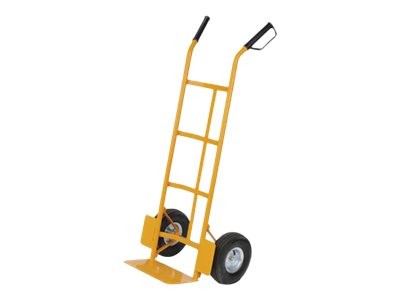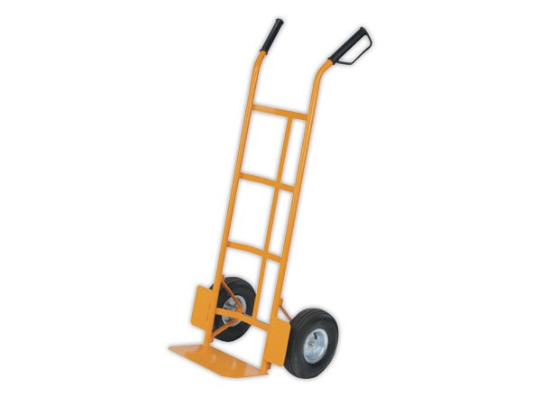 - En acier. - 2 roues pneumatiques ø 25 cm largeur 9 cm. - Poignées ergonomiques. - Dim. L 56 x l 46 x H 110 cm. - Bavette acier fixe : L 36 x P 21 cm. - Poids : 9 kg. - Charge maximale : 200 kg.