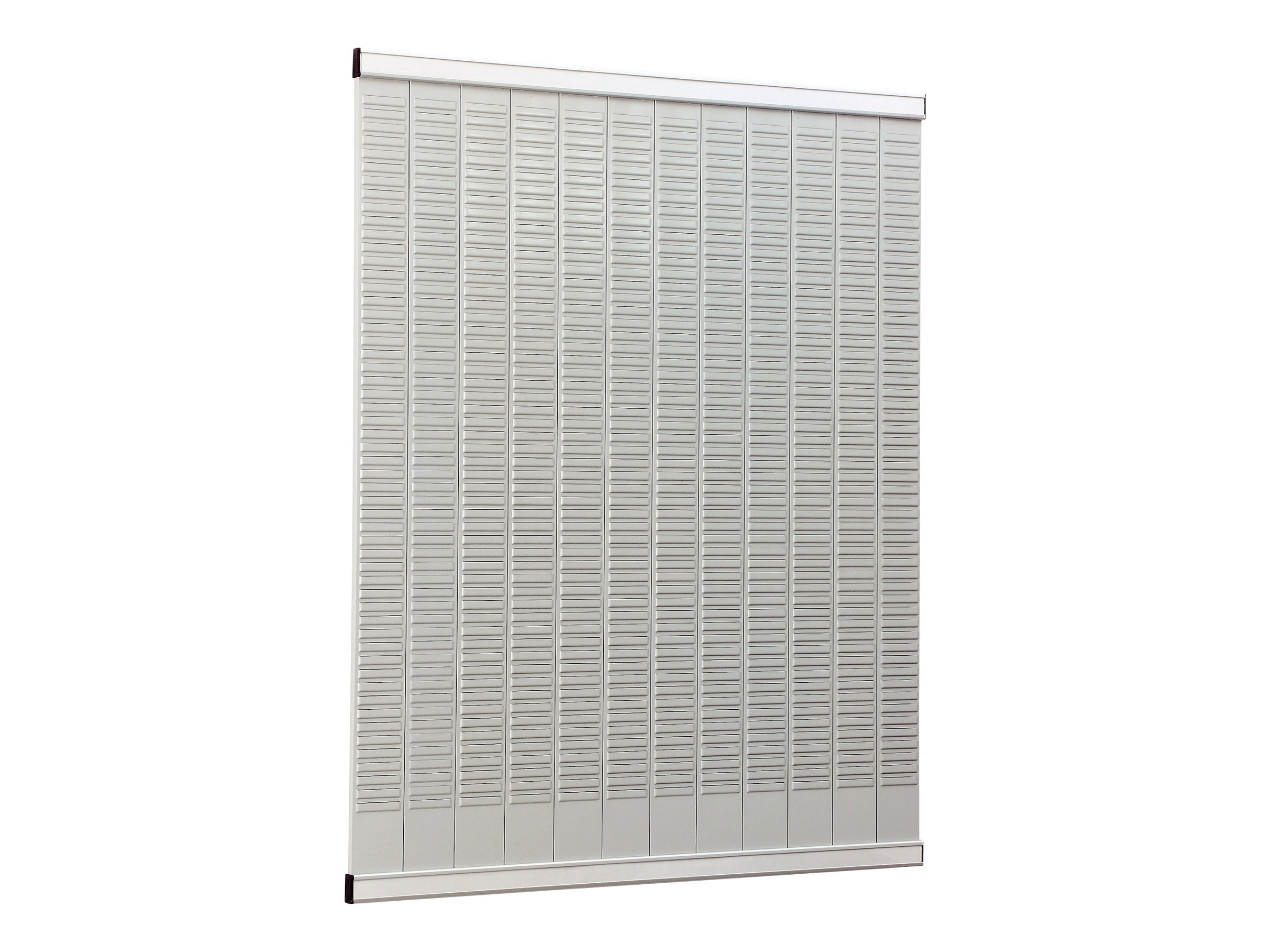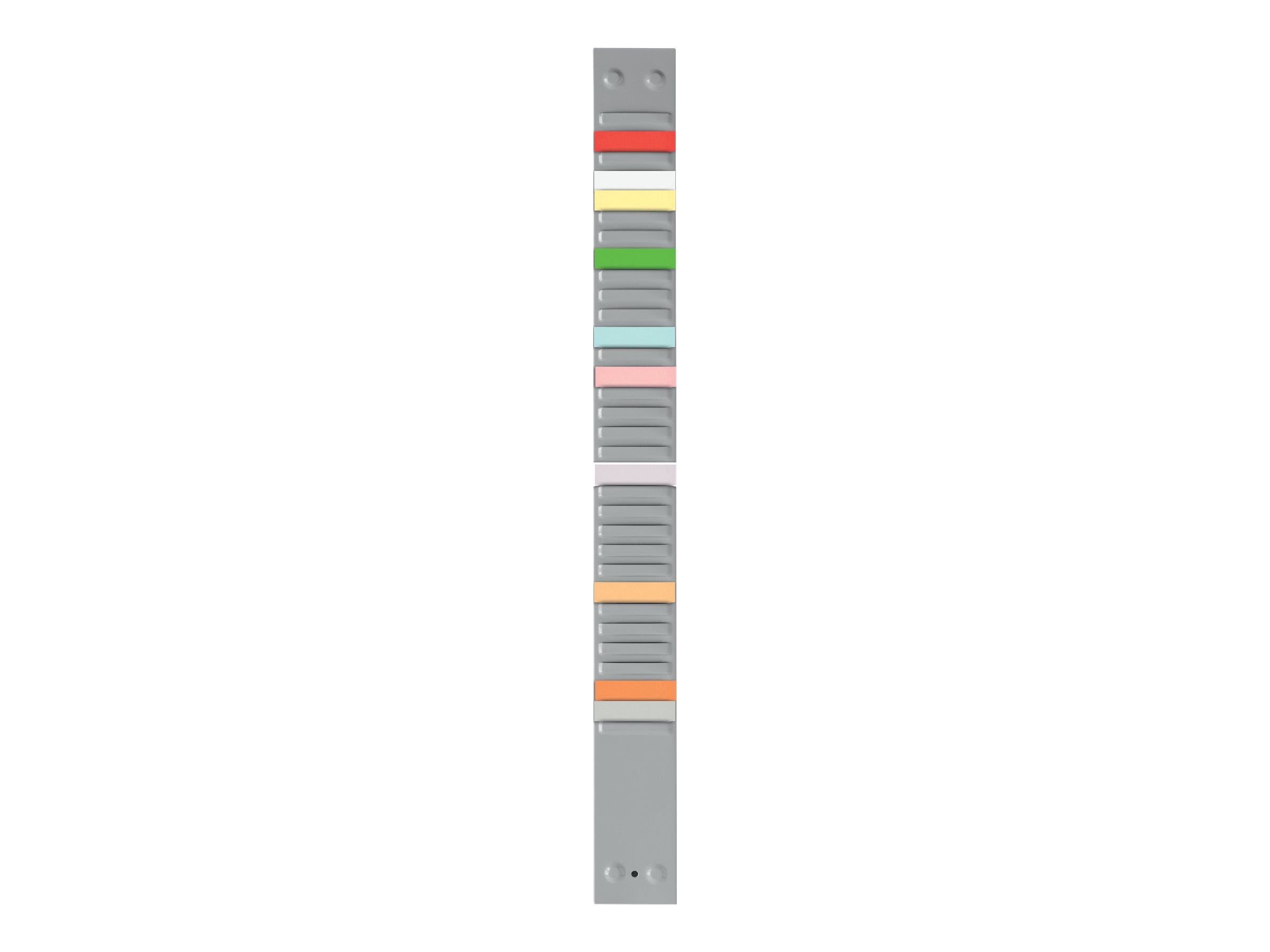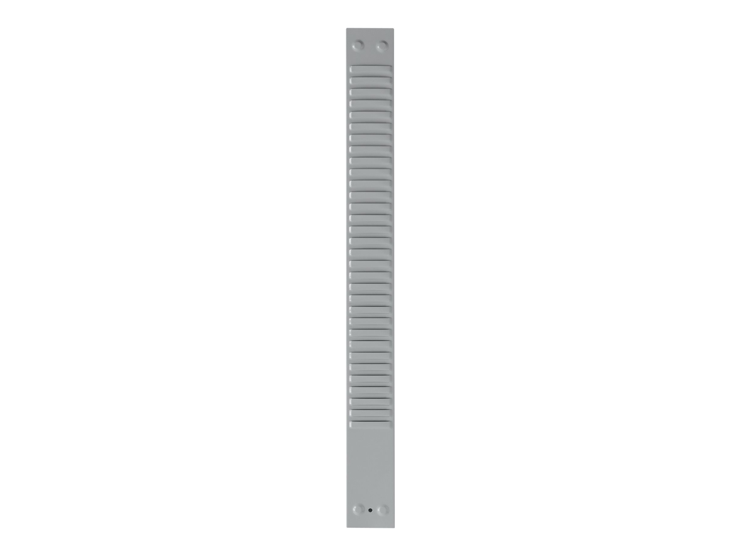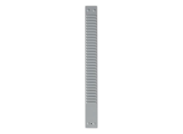 Pour fiches indice 2. 32 fentes. Dimensions : L 6,4 x H 65,5 cm. En métal gris clair.