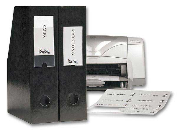 Pour identifier clairement le contenu de tous vos accessoires de classement. Livrés avec bristols en planche A5 pour faciliter l'impression. Format : 2,5 x 7,5 cm. 48 porte-étiquettes par boîte. Référence 3L : 10311.
