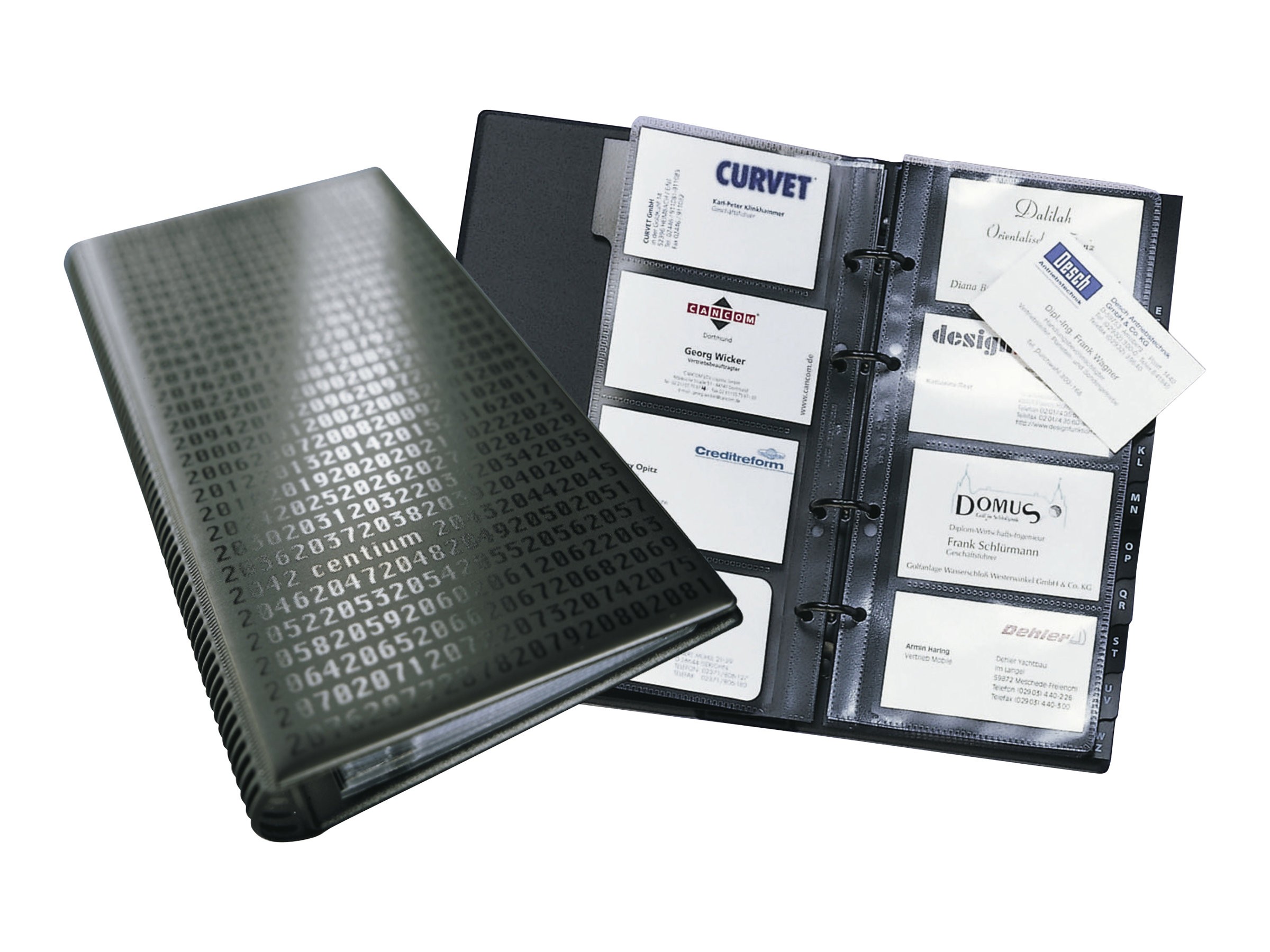 Description du produit | DURABLE VISIFIX Centium - classeur pour cartes de visite - 12 positions - capacité : 200 cartes - à onglets - noir transparent |