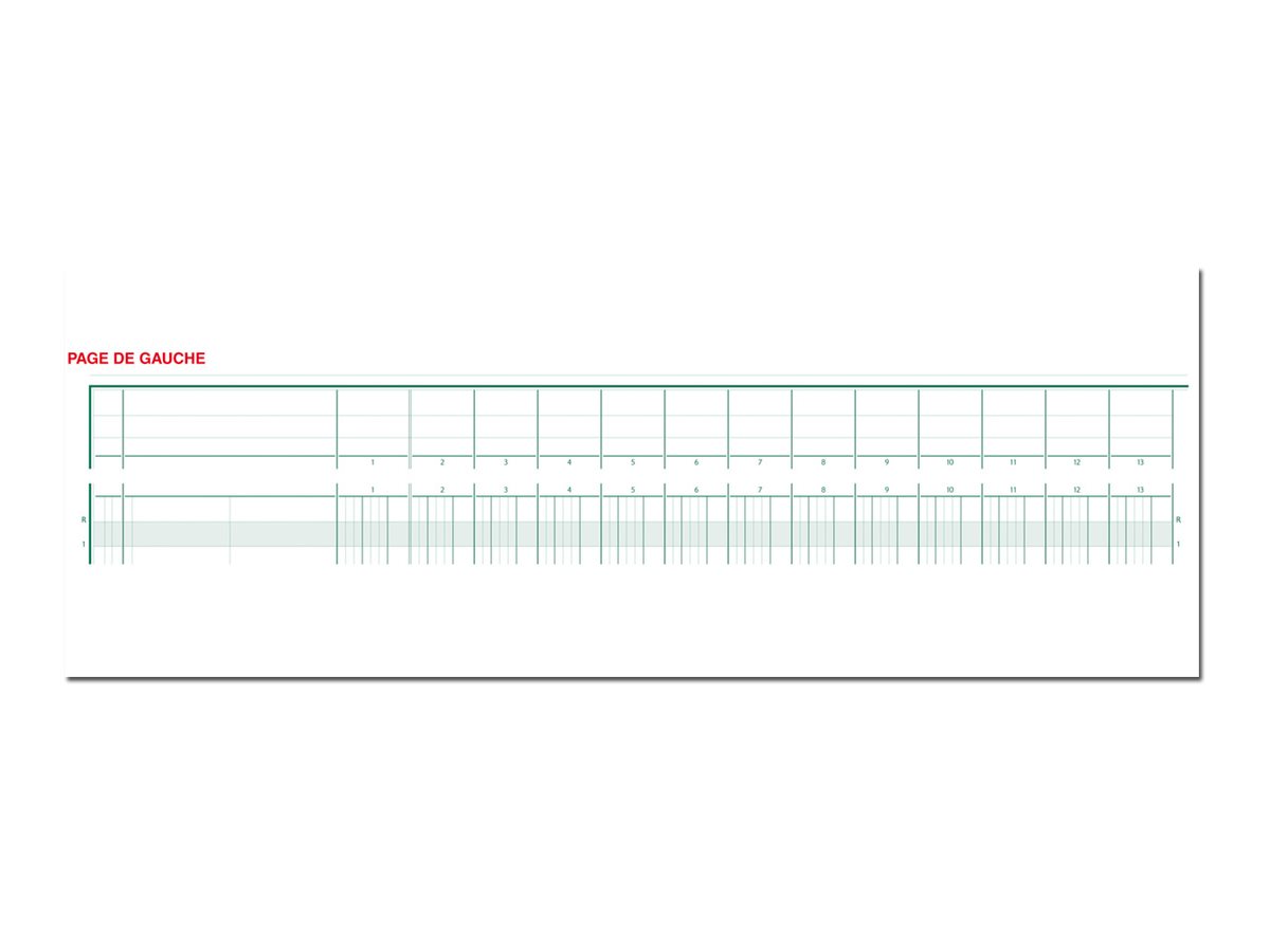 Utilisez les piqûres à tête paresseuse pour ne plus perdre de temps en recopiant les en-têtes de colonne. Format : 32 x 27 cm, à l'italienne. Reliure piqûre. 31 lignes. 30 colonnes sur 2 page. 80 pages numérotées. Référence Exacompta 16300E.