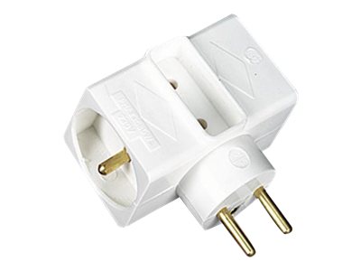 Cette multiprise triplite GENERIQUE, certifiée CE et NF, permet de transformer une seule prise en trois pour brancher plusieurs appareils électriques. Fabriquée en plastique, elle mesure 7,8 x 4,55 x 8,2 cm, idéale pour usage domestique ou bureau.
