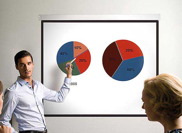 Ecran mural manuel à ressort. Carter en tôle laquée blanche. Fixations mixtes mur / plafond . Visserie non fournie. Format image 178 x 178 cm. Poids :7.5 kg.