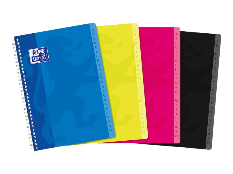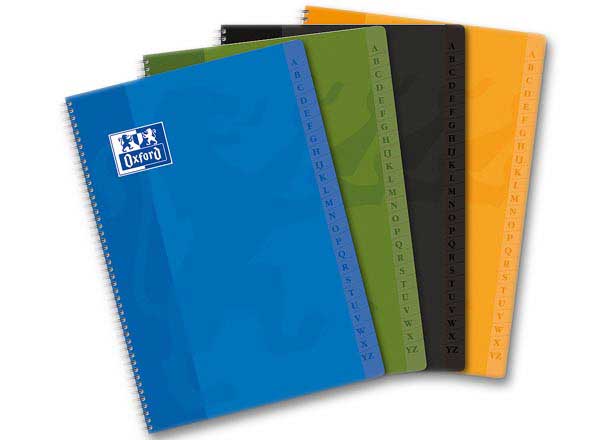 Couverture souple pelliculée. Touches alphabétiques plastifiées. Format :A4 - 21 x 29,7 cm. Réglure : Quadrillé 5 x 5. Reliure spirale. 180 pages. Coloris assortis.