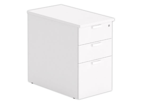 Idéal pour agrandir votre surface de travail. Caissons 3 tiroirs bois avec serrure générale 3eme tiroir pour dossiers suspendus. Corps et façade en mélamine ép. 19 mm et chants PVC ép. 0,8 mm. Livré avec plumier. Dessus en mélamine ép. 25 mm et chants ép. 2 mm. Union aux bureaux grâce à des platines (fournies) Vérins de réglage. Coloris assorti aux bureaux et armoires blancs. Dim. : L 44 x P 80 x H 73 cm