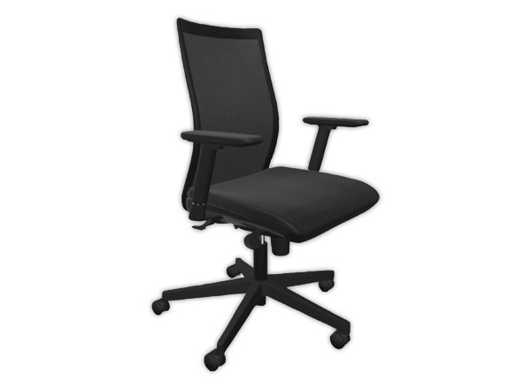 Utilisation intensive : mécanisme synchrone, multi-blocable avec sécurité anti-retour et réglable en intensité selon le poids de l'utilisateur (jusqu'à 110 kg) et mesurant approximativement entre 1,60 m et 1,90 m. Dossier en résille noire s'adaptant à toutes les morphologies. Haute densité de mousse d'assise. Piétement nylon armé. Accotoirs 3D réglables en hauteur, largeur et manchettes pivotantes (avant/arrière). Tissu et résille non feu EN 1021.1 et 2.