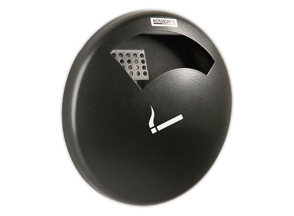Cendrier en acier avec revêtement en acier poudré polyester qualité extérieur. Grille écrase mégot intégrée pour éteindre les cigarettes. Vidage facile et rapide par simple décrochage du cendrier. Trous pour fixation murale en 2 points.Capacité : 0,5 L (260 mégots). Dim. Ø 18,5 cm, Ép. : 4,2 cm.