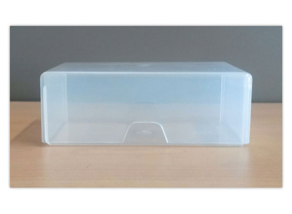 Étui fond et couvercle en polypropylène transparent. Capacité 100 cartes. Format 95 x 56 x 27 mm.